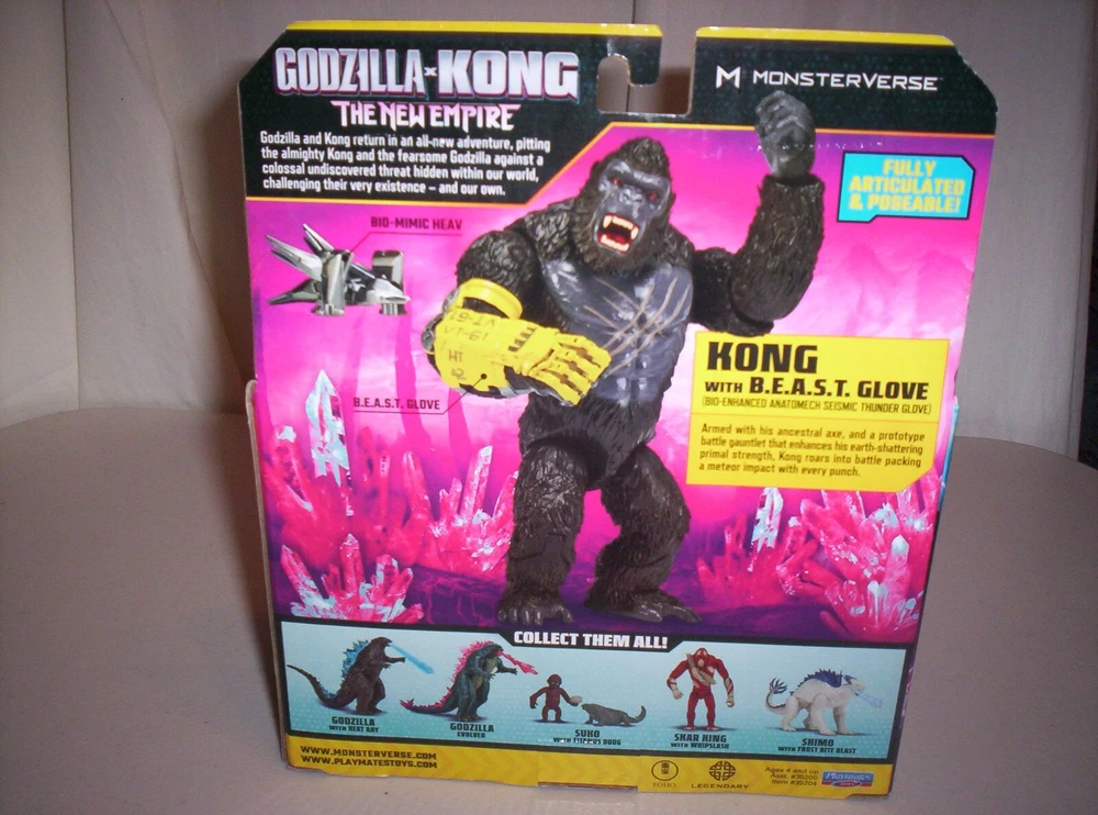 Get ready for an epic showdown between two of the most iconic movie monsters of all time with the 2024 Godzilla x Kong The New Empire KONG with B.E.A.S.T. Glove. This highly collectible toy features the beloved Playmates brand and is perfect for fans of the Godzilla and Kong franchises. The recommended age range for this toy is 4+ and it is manufactured in China. With this toy, you can recreate your favorite scenes from the upcoming blockbuster movie or simply display it as part of your collection. The attention to detail on this toy is impressive and it is sure to be a hit with both children and adults alike. Don't miss out on the opportunity to own this amazing Godzilla x Kong toy.