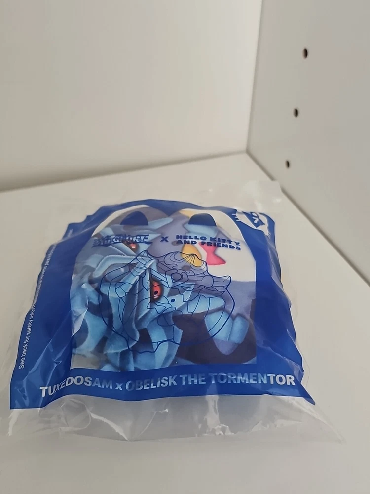 This rare 2024 McDonald's Hello Kitty plush toy features characters from the popular Yu-Gi-Oh! TV show, including Tuxedosam and Obelisk The Tormentor. The blue plush material is soft and cuddly, perfect for fans of all ages. The toy is a must-have for collectors and fans of the franchise, with its detailed design and English language. The Hello Kitty plush toy is made in China and is an official licensed product of the McDonald's franchise. It is a great addition to any collection of animation art and merchandise, and is sure to be a hit with fans of the Yu-Gi-Oh! TV show. Don't miss your chance to own this rare and unique item!