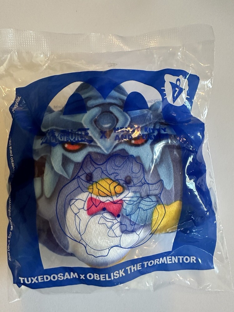 This rare 2024 McDonald's Yu-Gi-Oh! X Hello Kitty #7 toy features Tuxedosam and Obelisk The Tormentor characters. Made of soft plush material, it is a must-have collectible for any fan of the TV show. The toy was manufactured in China and is an official licensed product of the McDonald's franchise. With its unique design and attention to detail, this toy is a great addition to any animation merchandise collection. Whether you are a fan of Hello Kitty or Yu-Gi-Oh!, this toy is sure to impress. Don't miss out on the opportunity to own this rare and sought-after item.
