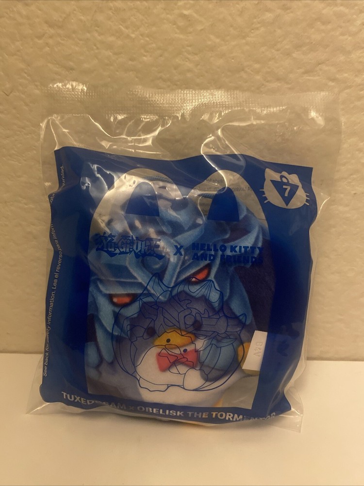 This rare 2024 McDonald's Yu-Gi-Oh! X Hello Kitty #7 toy features Tuxedosam and Obelisk The Tormentor characters, making it a must-have for fans and collectors alike. Made of high-quality plush material, this toy was manufactured in China and is an official licensed product of the franchise. Perfect for display or play, this unique item is a great addition to any collection of animation merchandise. With its stunning design and attention to detail, it's sure to impress even the most discerning fans of the TV show. Don't miss out on the chance to own this rare and highly sought-after toy!