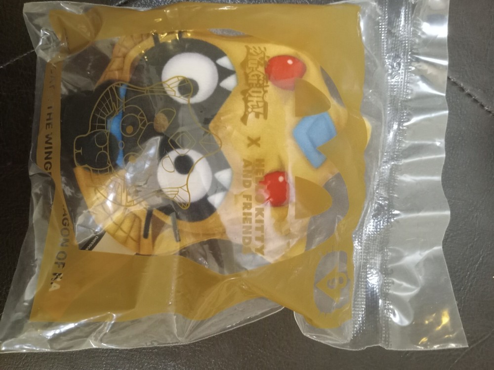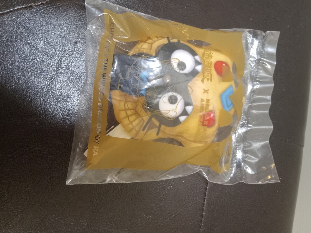 The 2024 McDonald's Yu-Gi-Oh x Hello Kitty toy features Chococat as The Winged Dragon of Ra from the popular character family collaboration. This toy is recommended for ages 3 and up, suitable for children in the 3-4 year age level. The packaging is good but may may show signs of wear such as creases, dents, or tears due to handling and storage. It is a collectible item that combines elements of two beloved brands, making it a unique and fun addition to any toy collection.