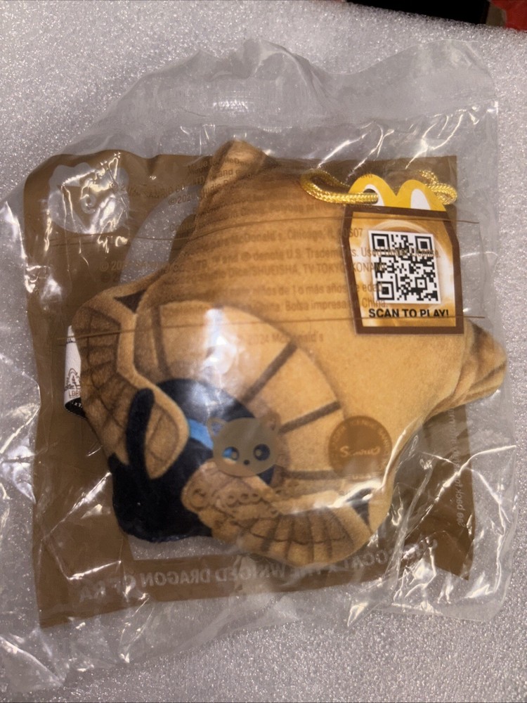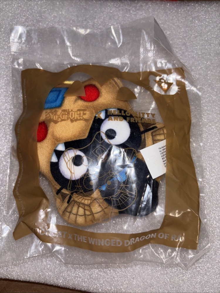 The 2024 McDonald's Yu-Gi-Oh x Hello Kitty toy features Chococat as The Winged Dragon of Ra, combining elements from the popular Yu-Gi-Oh and Sanrio brands. This specific toy is part of a series collaboration between the two franchises and is recommended for children ages 3 and above. The packaging may show signs of wear such as creases, dents, or tears, but the toy itself includes a unique combination of characters that fans of both franchises would enjoy collecting.