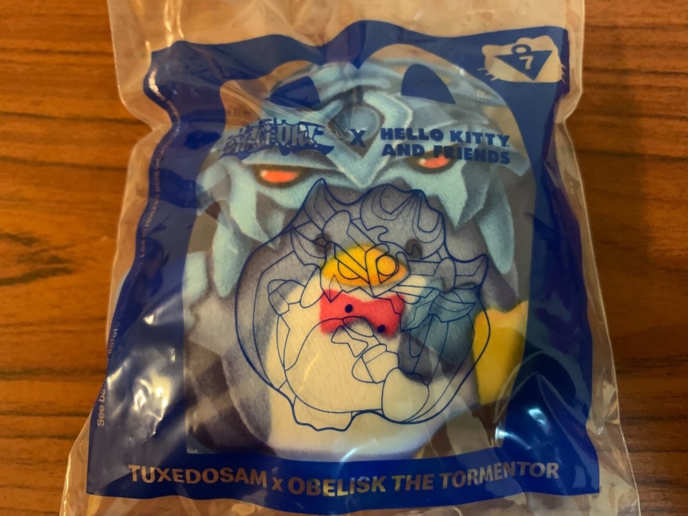 This rare and highly sought-after item is the perfect addition to any collection. Featuring the iconic characters Tuxedo Sam and Obelisk the Tormentor from the popular Yu-Gi-Oh! franchise, this McDonald's Hello Kitty toy is a must-have for fans and collectors alike. With its high-quality design and attention to detail, this item is sure to impress.Made exclusively for McDonald's restaurants in 2024, this toy is a great way to show off your love for Yu-Gi-Oh! and Hello Kitty. Whether you're a fan of the anime series or simply appreciate the unique designs of the characters, this item is sure to impress. Don't miss your chance to add this rare and exciting toy to your collection.