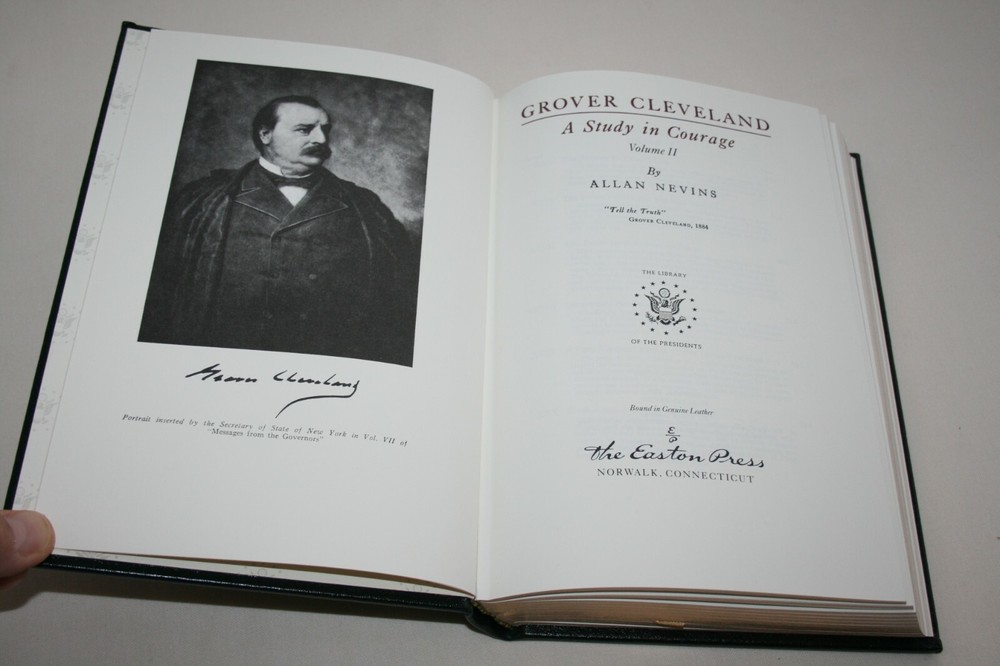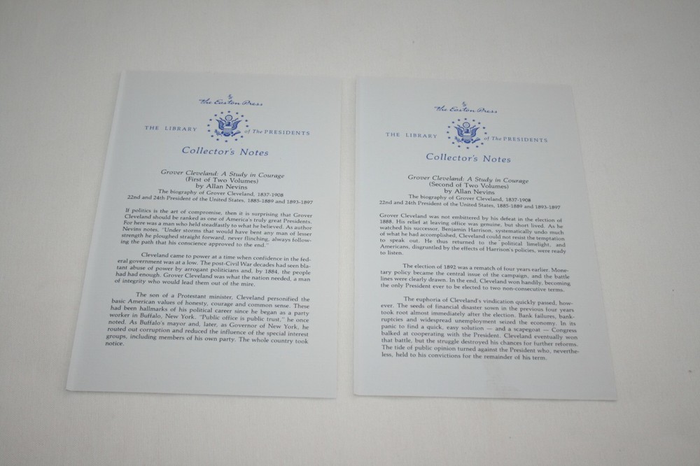 From the Easton Press Library of Presidents Collection... Grover Cleveland A Study in Courage Complete 2 Volume Set by Allan Nevins Copyright by The Easton Press Bound in Premium Full Leather These volumes contain all of the classic Easton Press trimmings: Premium Leather Decorated Endleaves Distinctive Cover Design Hubbed Spine, Accented in Real 22KT Gold Satin Ribbon Page Marker Gilded Page Edges Long-lasting, High Quality Acid-neutral Paper Smyth-sewn Pages for Strength and Durability Scarce titles in any condition, this two-volume set is in Absolute Mint and Unread condition. The front and back covers are both in Perfect condition and the gilded page edges show no wear at all! The bindings are tight and square without spine lean. This set is part of The Library of Presidents Collection published by Easton Press and comes complete with both sets of Collector's Notes and attached bookplates from the previous owners. It would be a beautiful addition to your Easton Press collection. Overall, this set is a grade collector's set. This set is very elusive in this superior condition, as only a limited number of them were ever published, so now is the time to act. Hopefully you can add this set to your collection and enjoy it in the years to come... Please Email Me With Any Questions You Might Have! Shipping Info: Buyer to Pay Shipping & Handling International Bidders Pay Extra Shipping Forms of Payment Accepted: Paypal Good luck and happy bidding! Powered by eBay Turbo Lister The free listing tool. List your items fast and easy and manage your active items.