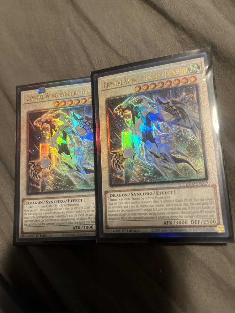 This Crystal Wing Synchro Dragon card from the Yu-Gi-Oh! TCG is a rare find, with a stunning ultimate rare design that collectors will love. The card features the powerful dragon in all its glory and is a must-have for any serious player or fan of the game. It is a 1st edition card from the - Yugi - set and has been well-maintained, with a near-mint condition that will make it a great addition to any collection. This English-language card is manufactured by Konami and is perfect for those who are looking for a card with excellent features. The card's rarity and set make it even more special, and the United States country of manufacture ensures that you are getting a high-quality product. Overall, this Crystal Wing Synchro Dragon is a fantastic card for anyone looking to add to their collection or improve their gameplay.