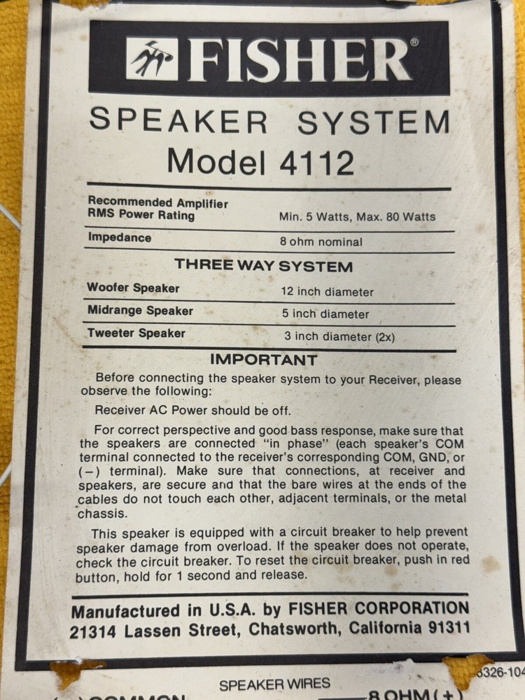 | Brand | Fisher |