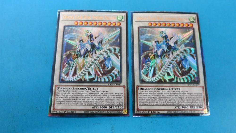 Welcome to Great_Deals_On_Collectibles.We are in the retail hobby sector and have been since 1991.We sell sportscards,gaming cards,comic books,action figures,plush toys and various other hobby related items.We have been on Ebay since 1999.We try to make buyers experience on EBAY as satisfying as possible.Our feedback on Ebay speaks volumes.Every item we have up for auction is LIVE and ready to be shipped upon payment. If you have any questions feel free to contact us,thanks for showing interest. YUGIOH You are bidding on 2x PRISMATIC ULT RA04-EN059 CRYSTAL CLEAR WING SYNCHRO DRAGON YUGIOH PACK FRESH