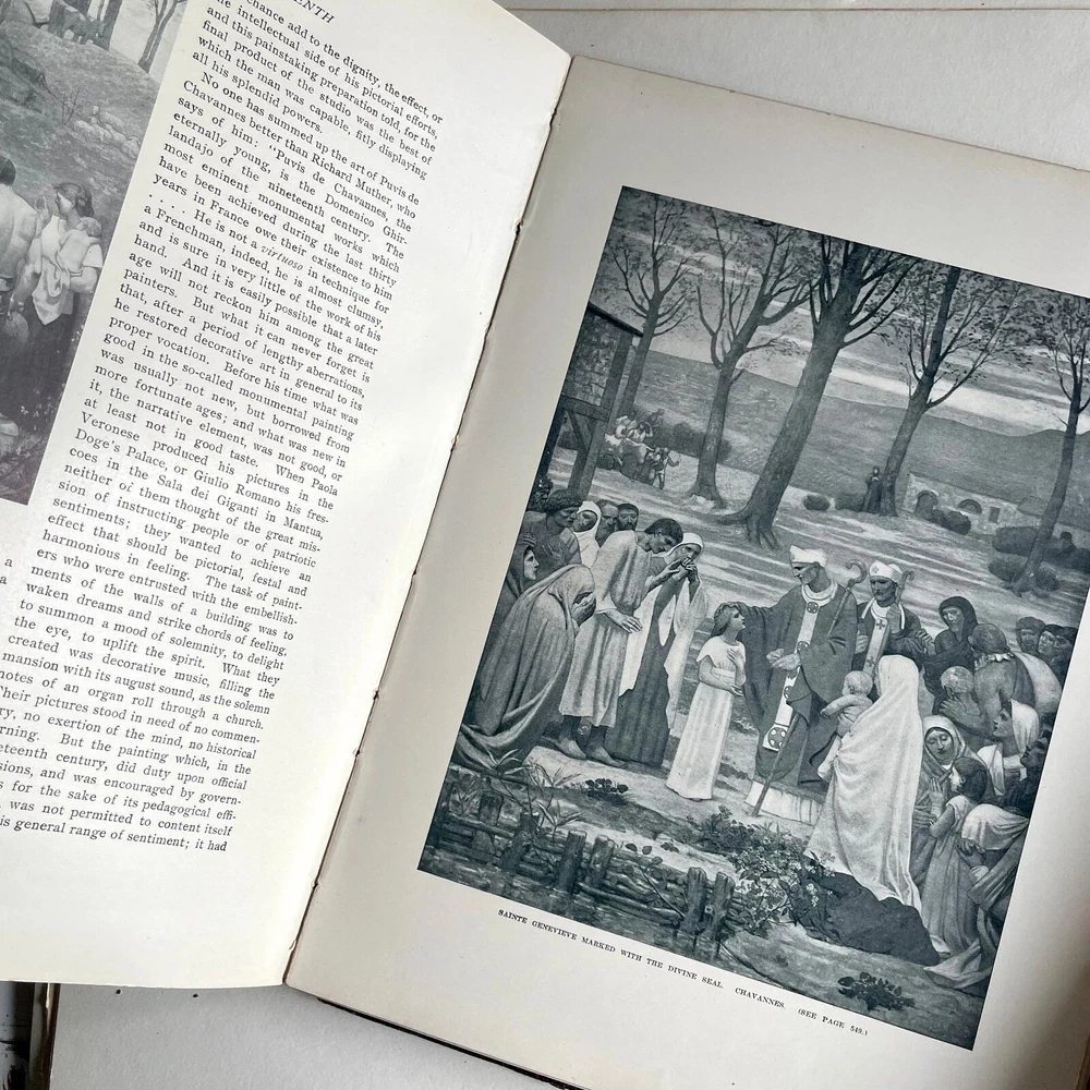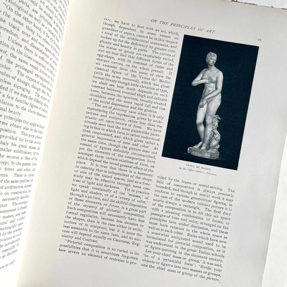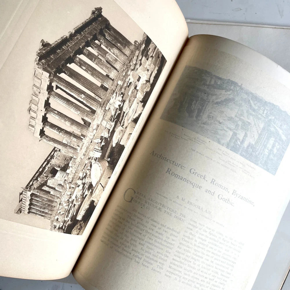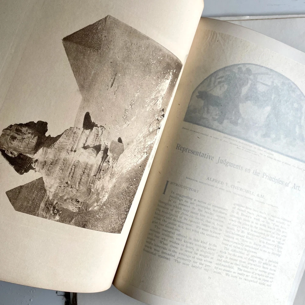 The Fine Arts: a University Course in Sculpture, Painting, Architecture and Decoration in their History, Development and Principles [ Volumes I, II & III ] edited by Edmund Buckley published by National Art Society 3 leather-bound antique volumes in good used condition, fully illustrated "The Fine Arts: A University Course in Sculpture, Painting, Architecture and Decoration in Their History, Development and Principles (Volumes I, II & III), edited by Edmund Buckley, is a comprehensive educational series published by the National Art Society. These volumes offer an extensive study of the history and evolution of major art forms, including sculpture, painting, and architecture. The books cover both technical principles and the artistic developments in these fields across different historical periods. The goal is to provide a broad academic foundation for understanding and appreciating fine arts."