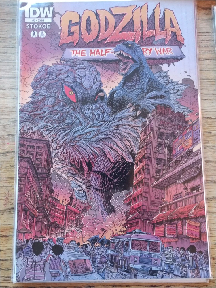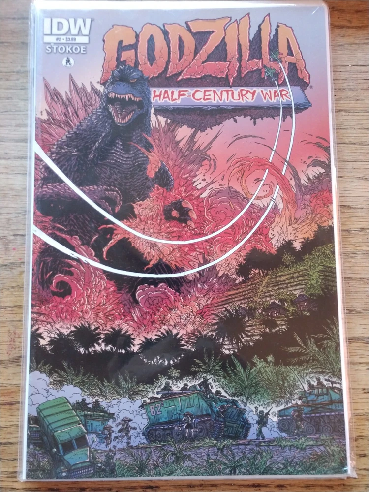 This auction features three issues of the "Godzilla: Half Century War" comic book series by James Stokoe. The comics are numbered #2, #3, and #4 and are published by IDW. The series follows the adventures of a soldier named Ota Murakami as he battles Godzilla and other kaiju monsters throughout history. These comics are perfect for fans of Godzilla and war-themed stories. The series is set in the modern age (1992-now) and features stunning artwork by James Stokoe. Don't miss out on the chance to own these exciting issues!