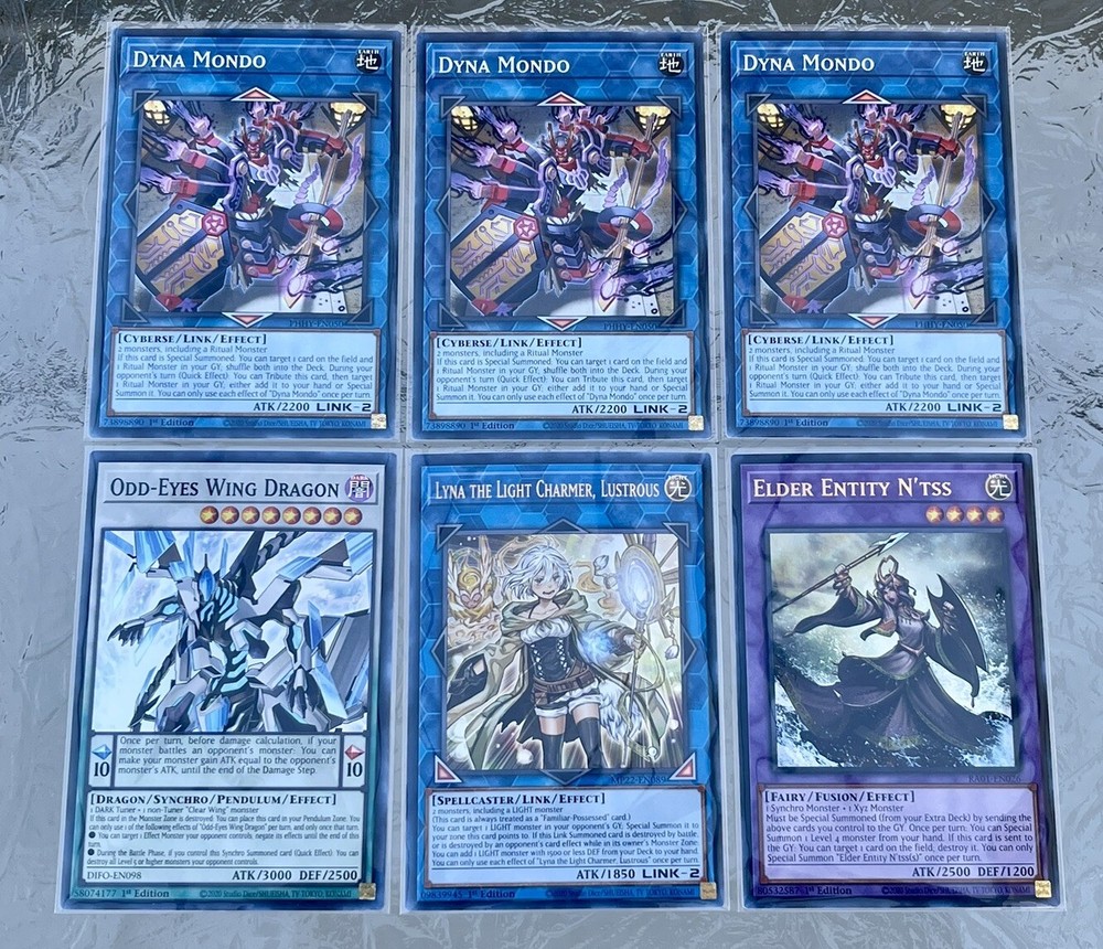 ~ Y u -G i -O h ! ~ 3 x Dyna Mondo | PHHY-EN050 ~ - 1 st Editions ! ~ - Commons ~ - Near M int ~ { + } ~ ODD-Eyes Wing Dragon | DIFO-EN098 ~ - 1 st Editions ! ~ - Super Rare s ~ - Near M int ~ { + } ~ Lyna The Charmer , Lustrous | MP22-EN089 ~ - 1 st Editions ! ~ - Ultra Rare s ~ - Near M int ~ { + } ~ Elder Entity N ' TSS | RA01-EN026 ~ - 1 st Editions ! ~ - Ultra Rare s ~ - Near M int ~