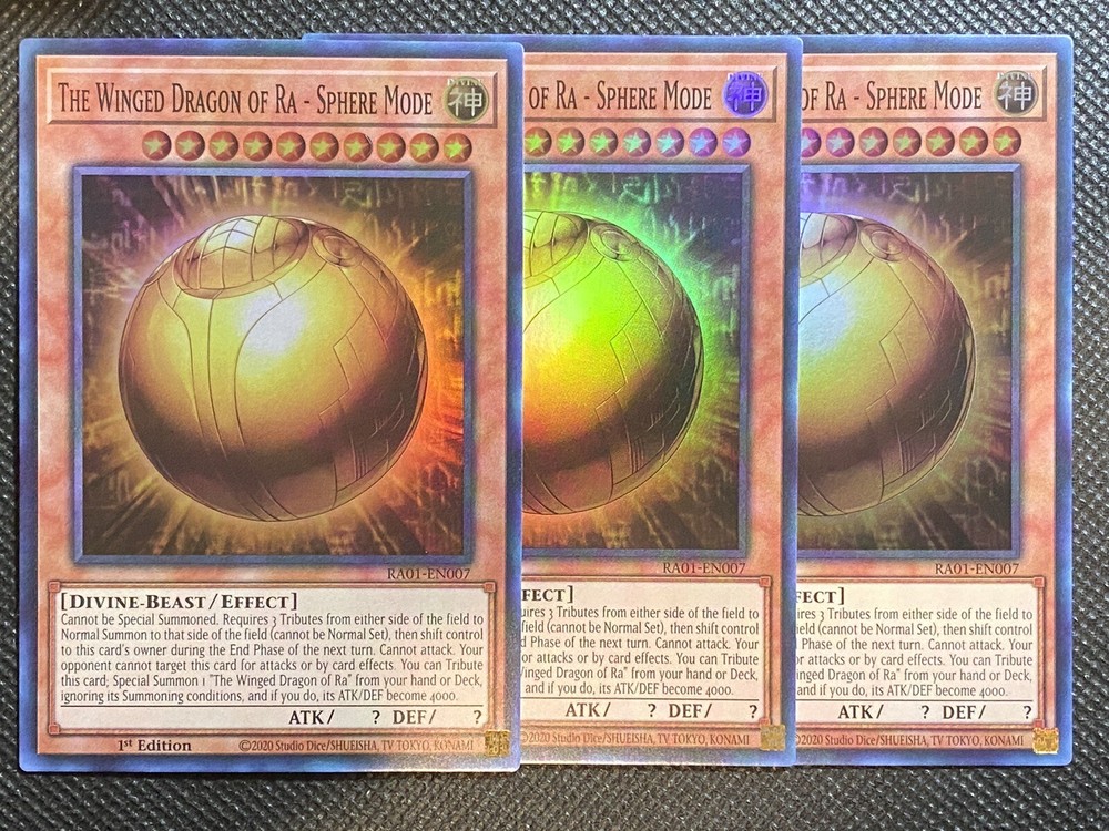 Wow, these Ra Sphere Mode cards are absolutely perfect! The seller packs them with such care in sleeves and top loaders, and they arrived looking flawless. Super fast shipping too. An amazing purchase for any collector!