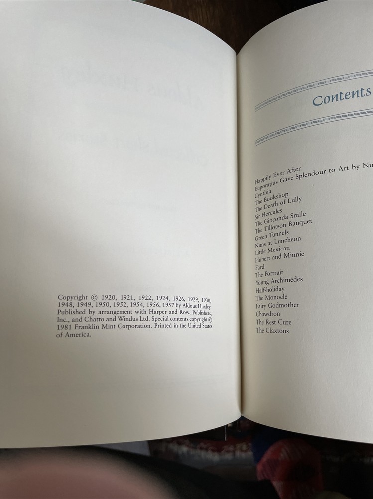 4 Lovely Vintage Franklin Library Books HUXLEY, WILDER, BIERCE, Henry Adams leather, gold leaf and Excellent condition. Exception: the bridge of San Luis by Wilder has some apparent warping in pages....