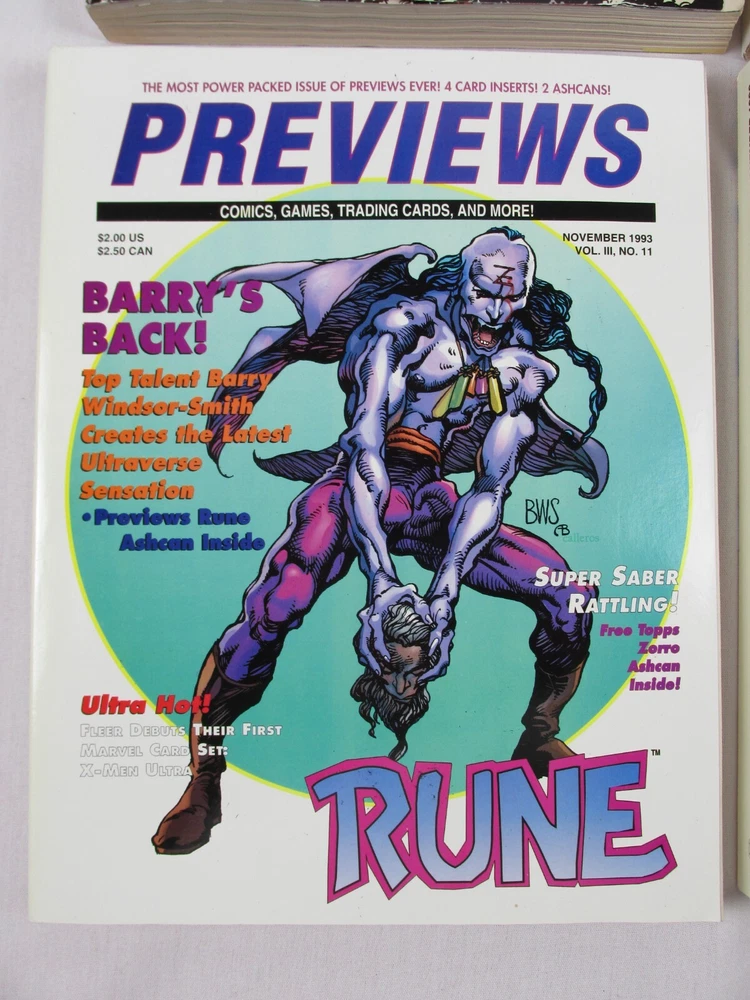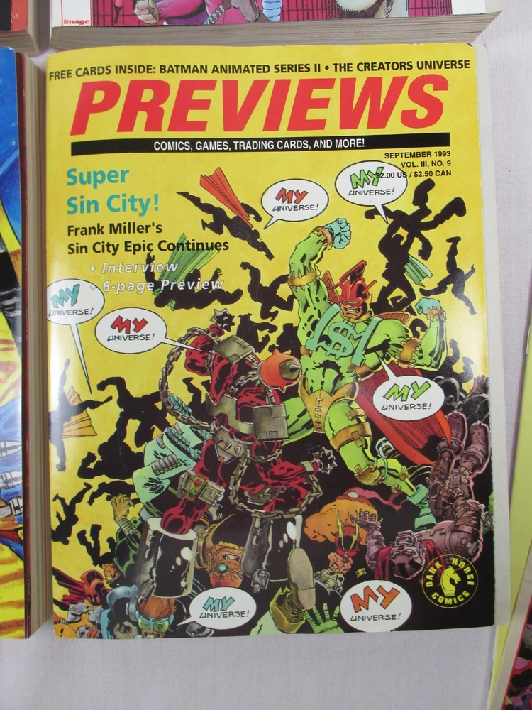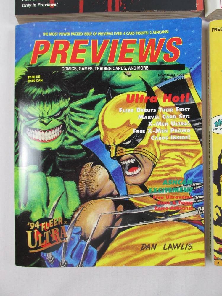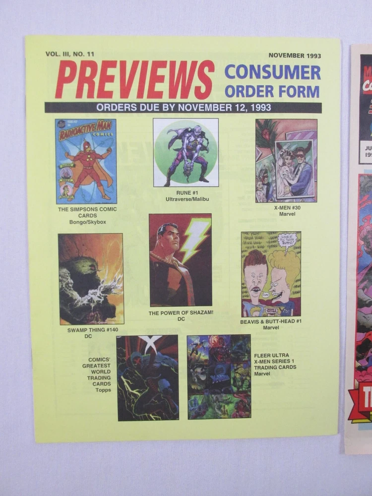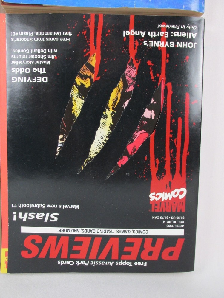 (4) PREVIEWS Comics 1993 / Volume 3 No. 4, 5, 9 & 11 Marvel DC + Consumer Order Form Preowned in very good condition. See all pictures for condition and details as they are an intricate part of the description! ~~~~~~~~~~ NO RETURNS. ~~~~~~~~~~ Be sure your shipping address is correct when making a purchase. Items are shipped via U.S.P.S, UPS or FedEx. Large/valuable items are generally shipped insured with signature delivery confirmation. Item ships within two business days after receiving payment. ~~~~~~~~~~ We do our best to describe items accurately. Where there are noticeable defects, we will attempt to describe it or picture it. Please read description and view all photos BEFORE purchasing. Pictures are a part of the description which can tell the condition better than words. We encourage your questions before you buy an item. ~~~~~~~~~~ Feedback is very important to our business. Please take the time to leave feedback and we will quickly and gladly do the same for you. Leaving feedback is a way of letting us know that you received your item and you are happy with your purchase. If you have an issue with an item, please contact us before leaving neutral or negative feedback.