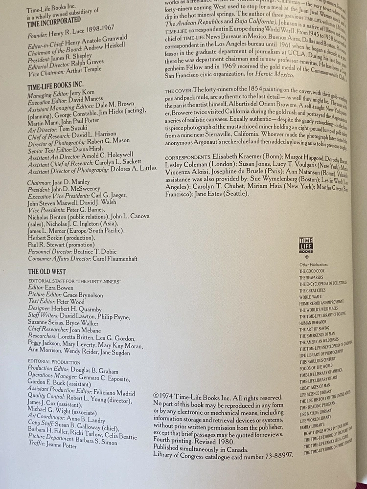 4 Vtg Time Life The Old West Leatherette Books:The Railroaders,The Forty-Niners,The Canadians, The Alaskans A set of 4 vintage Time Life Old West leatherette books from the OLD WEST SERIES. The books cover topics such as, The Railroaders, The Forty-Niners, The Canadians and the Alaskans, and are illustrated with faux leather bound hardcovers. They are part of a Collector's Edition published in 1973, 1974, 1977, 1977 with a total number of 240 pages in each book. The books are written in English and provide insight into American history. Very good condition, non smoking, no pet environment. Thanks for looking