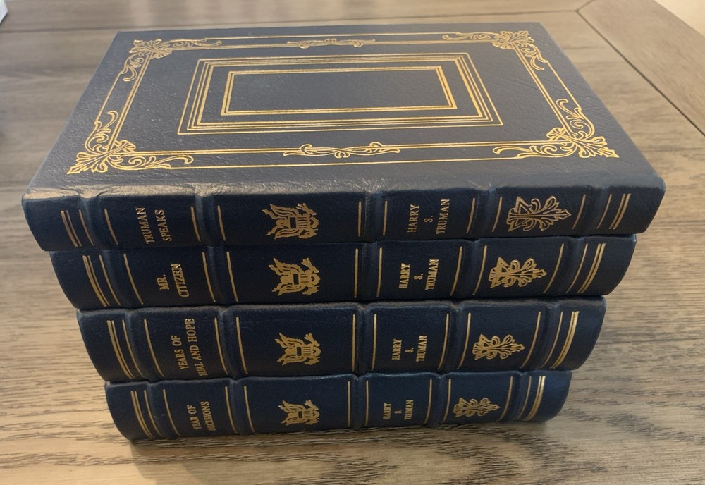 Delve into the poignant and insightful world of American politics with the 4-volume set of "Memoirs of Harry S. Truman" presented by Easton Press. These collector's editions are a treasure for both bibliophiles and history aficionados, bound in elegant leather that exudes a classic feel. Each book offers a deep dive into the life and times of the 33rd U.S. President, revealing his thoughts and experiences in a time capsule of political history. The set is a must-have for anyone interested in biography and autobiography, especially from a political perspective. Published by Easton Press, these books not only serve as a historical record but also as an homage to the enduring legacy of Harry S. Truman. They are a perfect addition to any collection, blending the appeal of fine literature with the significance of historical accounts. Please look at pictures before purchasing the item. I’ll be more than happy to send additional pictures of the books and answer any questions about these books. A great item addition to any book collection.
