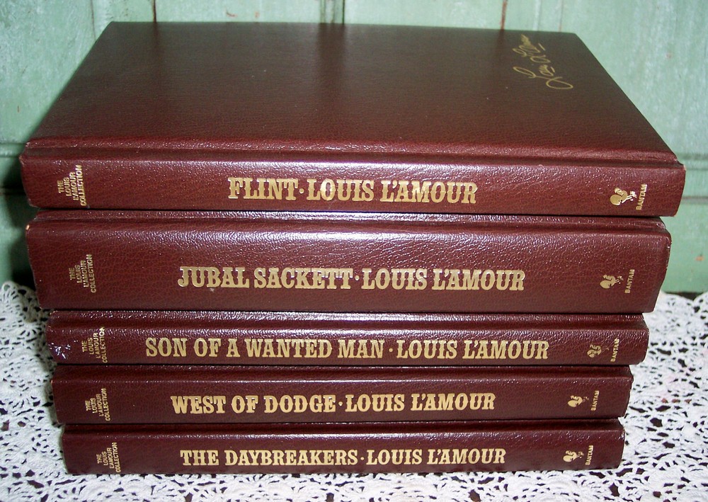 We have for sale 5 Louis L'Amour Leatherette Collector Novels, Poetry, Short & Biography Books. These were an estate find. Good condition overall, some rubs on the edges of the books (See Photos). 2 have the owner's name written on the inside cover in pencil. They were each stamped book sale on the inside cover (See Photo). Titles shown in the photos: Flint, Jubal Sackett, Son of a Wanted Man, West of Dodge, and The Daybreakers. Thanks for looking. No international sales. Please check all shipping options to get your best rate. Most of the items we offer are previously owned items purchased at auctions, flea markets and yard sales. We do not claim to be experts on any of our items. We do our best to provide clear photos and describe the items to the best of our ability. Please take the time to look at all the photos, read the description, and ask before purchasing. We ship Mondays, Wednesdays, and Friday.