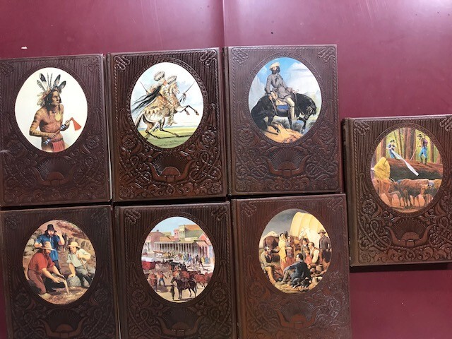 The listing is for a set of 7 vintage "The Old West" Time-Life Books, featuring a faux leather-bound cover and illustrations. The books are part of "The Old West Series" and offer short stories on American history and Westerns. Published by Vintage Books in 1973, these first edition or revised edition books are intended for young adults and adults interested in history. Each book provides a nonfiction narrative on various aspects of the Old West, making them a valuable addition for those intrigued by Western history.