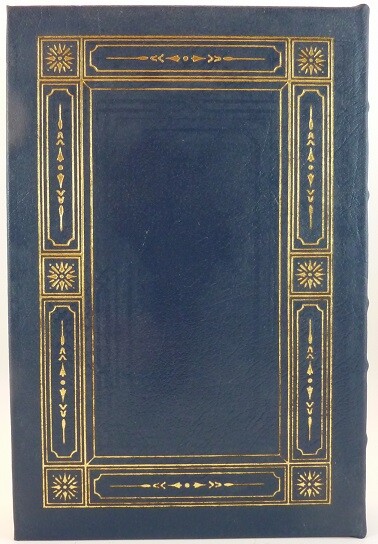This Collector’s Edition has gold embossing on dark blue leather, hubbed spines, brown moire end papers, ribbon bookmark, and gilt edging and an unused Easton Press bookplate. The book measures approximately 6 ½” wide, 1 ½” deep and 9 ½” tall. There are eight pages of black and white photographs. The pages are clean, tight, and undamaged, but there is some light wear to the gold embossing on the front and back covers. Pictures are of the item you are buying. Please email me with any questions. Thank you for looking.