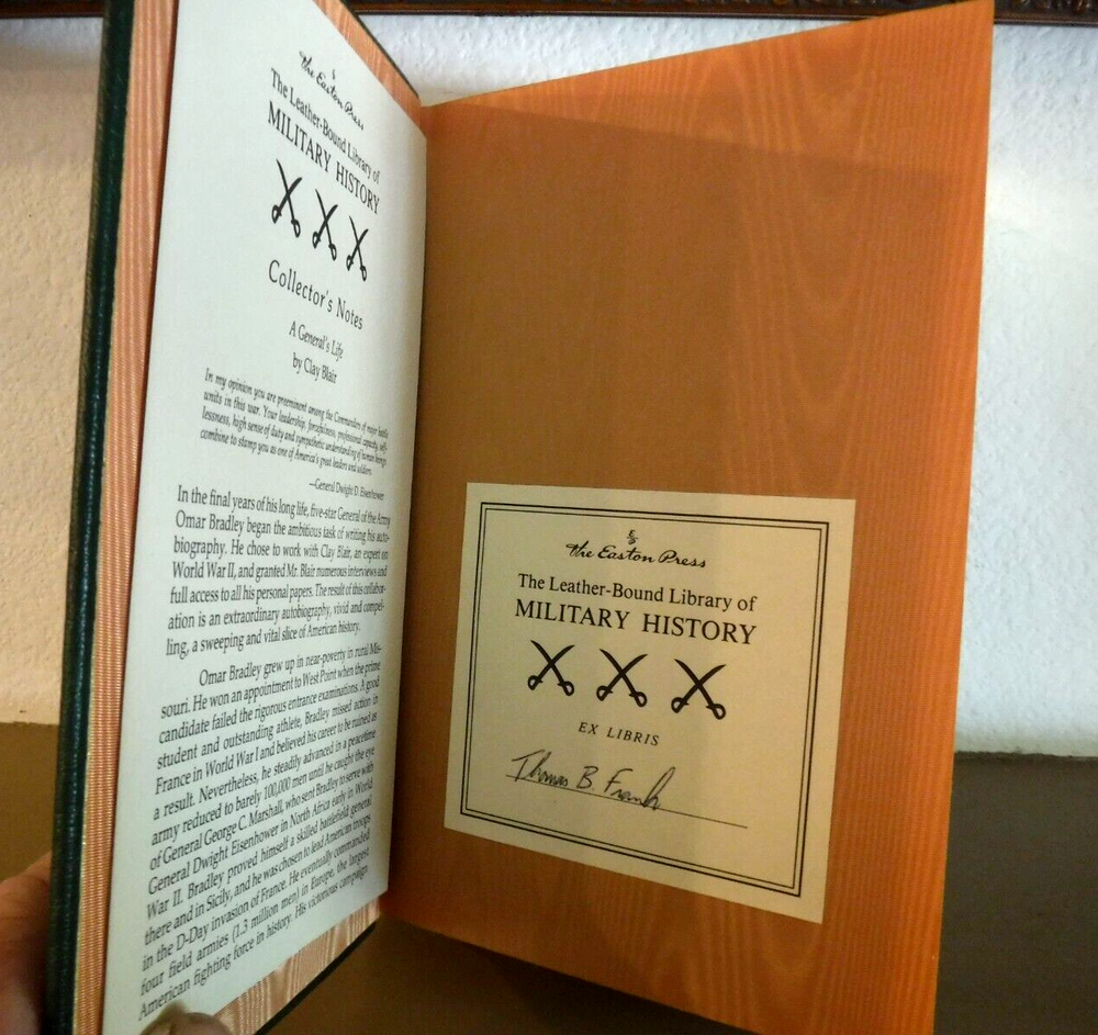 This limited edition Collector's Edition book titled "A General's Life" by 5-Star Gen. Omar N. Bradley is a must-have for any military enthusiast. The book is bound in high-quality leather and features exquisite illustrations. It was published by Easton Press in 1995 and is an original copy. It is an autobiography, & includes the author's experiences during World War II and the Korean War. It is written in English and has a total of 752 pages. The book is located in Norwalk, CT, and is a valuable addition to any book collection.