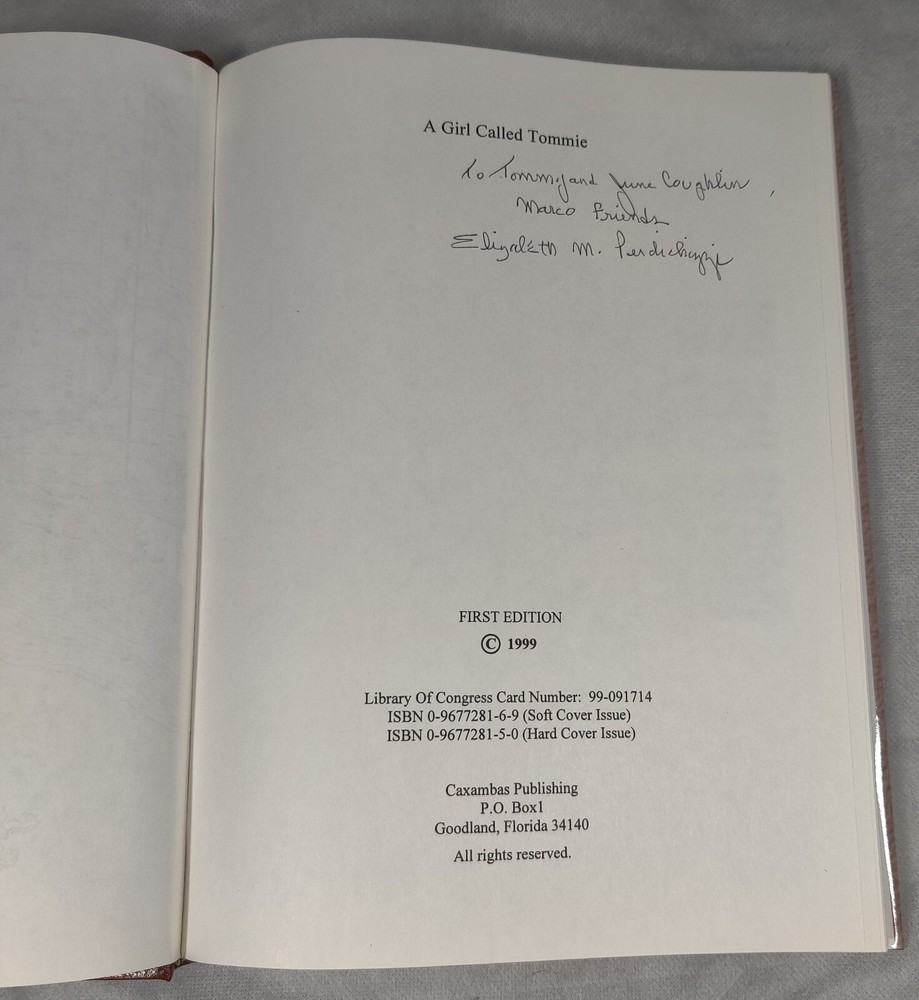 Excellent condition with no writing other than inscription and signature. No dogears. Appears unread. Measures 10.75 x 8 inches. Will also include a 2006 newspaper article on Katherine "Kappy" Kirk, written by Elizabeth "Betsy" Perdichizzi. AI says: This book is a one-of-a-kind masterpiece that tells the story of a remarkable girl called Tommie who becomes the queen of Marco Island. The book is a first edition and is signed by Elizabeth Perdichizzi, making it even more special. The faux leather binding and dust jacket add to the elegance of this book, while the 145 pages are filled with a captivating biography that belongs in every collection. The book is in English and was published by Caxambas Publishing in 1999. The author, Katherine S. Kirk, has done an excellent job of capturing the customs and traditions of the era, making it a perfect addition to the genres of biography & autobiography and social science. This book is a great find for collectors and anyone who loves a good story.