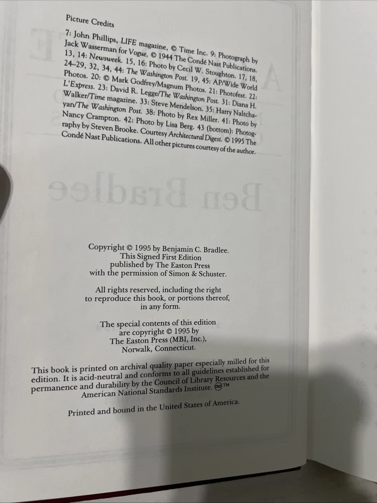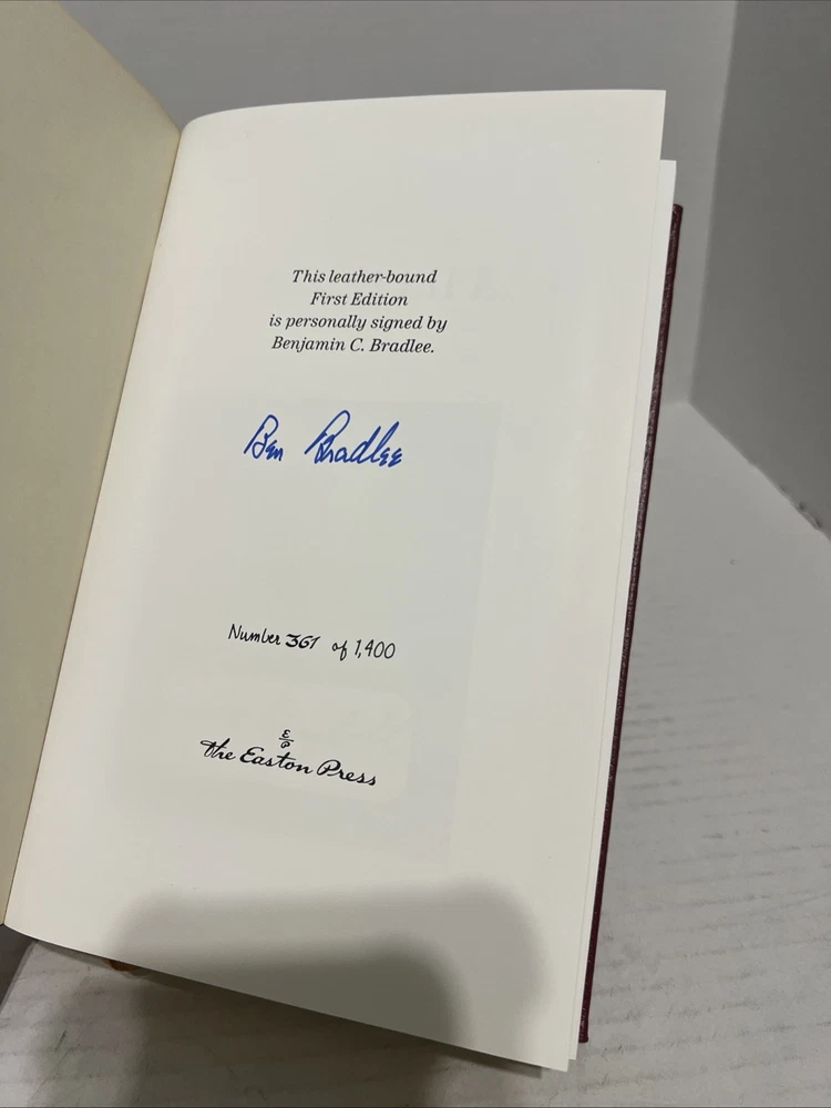 Delve into the captivating world of biography and autobiography with "A Good Life," a signed first edition by the esteemed Ben Bradlee. This leather-bound volume from Easton Press is a treasure for both bibliophiles and collectors alike, offering a luxurious reading experience with its fine craftsmanship and high-quality materials. The book is a seamless blend of engaging content and exquisite design, featuring a range of topics from bibliographies to indexes with a focus on Biography & Autobiography. With its origins unknown, the country of manufacture adds an air of mystery to this already intriguing piece. Whether for display or reading, this book promises to be a noteworthy addition to any collection.