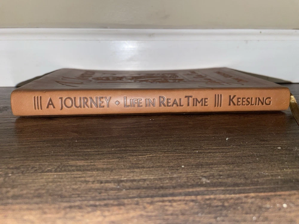 This beautiful leather-bound book, "A Journey Life In Real Time" by David Keesling, is a must-have for anyone interested in religious and spiritual topics. Published in 2007 by Times Books, this book is written in English and has 742 pages. The book cover is made of high-quality leather and is perfect for those who enjoy collecting nice books. The book is in its original language, and it is also available in other formats. With its religious and spiritual topic, this book is perfect for those who are looking for inspiration and guidance in their life.
