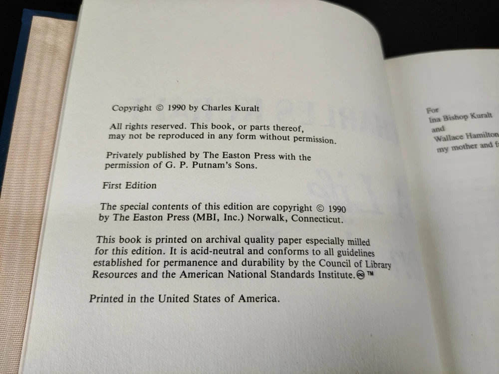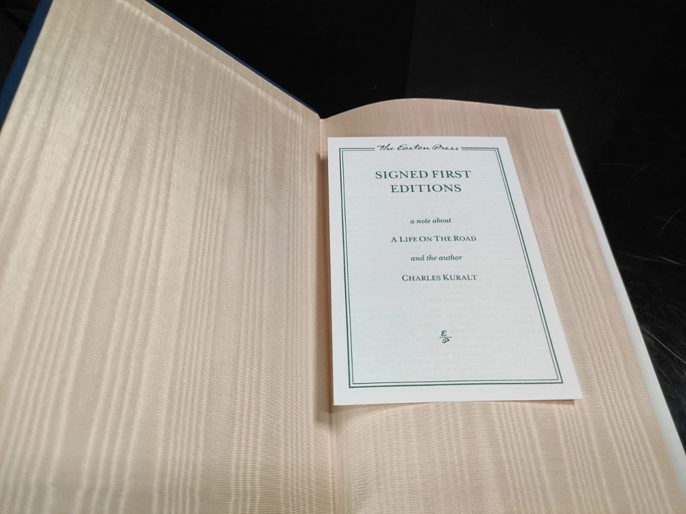 A Life on the Road by Charles Kuralt, Easton Press Signed 1st Edition, 1990.