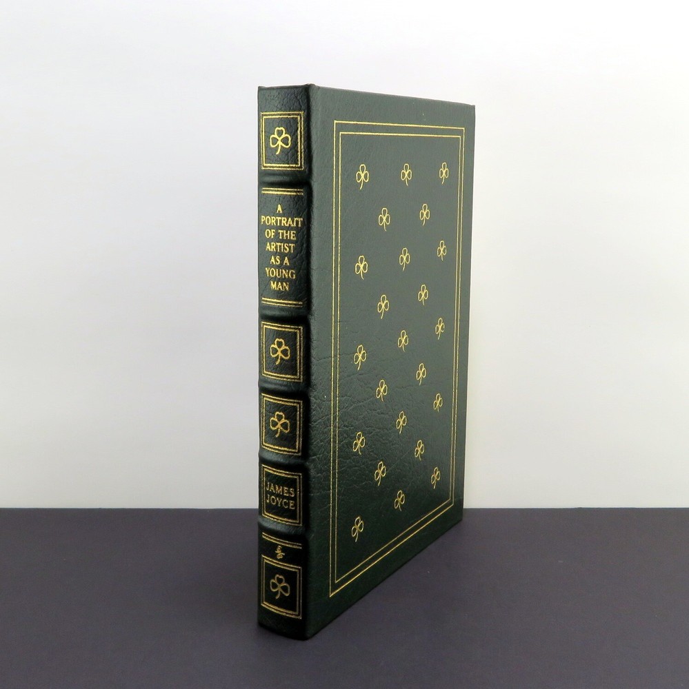 Title: THE PORTRAIT OF THE ARTIST AS A YOUNG MAN Author: James Joyce Illustrations: Brian Keogh Published: 1977, Easton Press, Norwalk CT (Series: 100 Greatest Books Ever Written) About: Dublin Ireland, social life and culture. The story of a secretive imaginative boy in Dublin Ireland during the late 1800's Victorian Era. Irish Catholic upbringing. Physical Description: Dark green leather over boards. Gilt decorative front, back and spine. Moire endpapers. Ribbon marker. Condition Notes: Appears new, no defects. Pages: 254 Dimensions (inches): 10 x 7 Shipping weight (pounds): 4 SKU: 6918 Powered by SixBit's eCommerce Solution