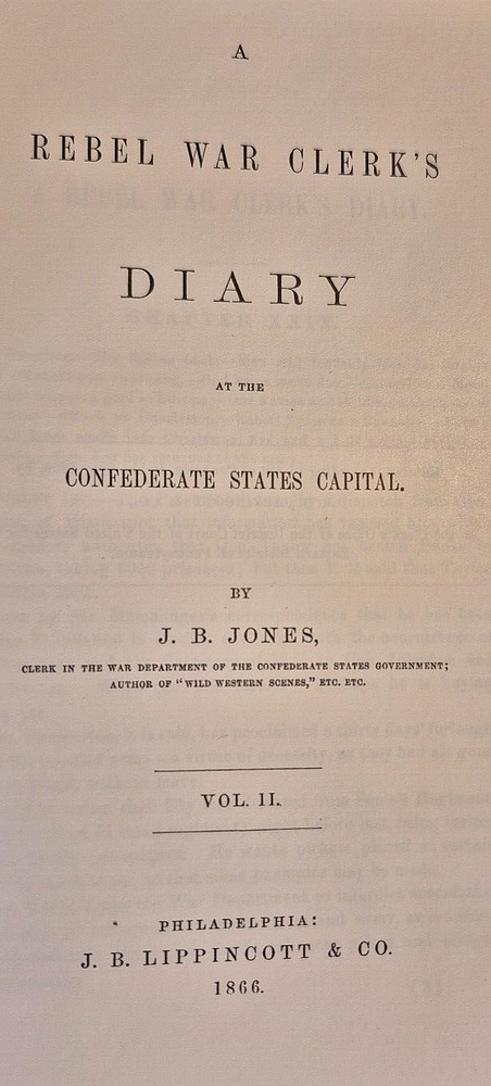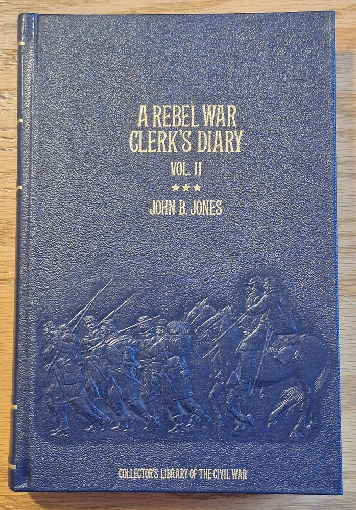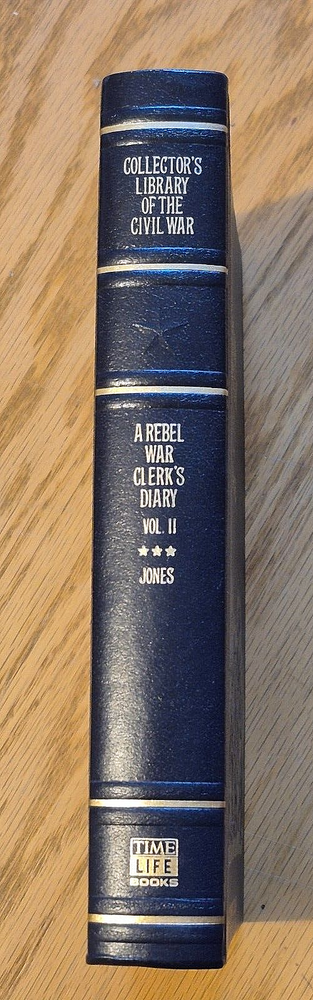 Deluxe reissue of an 1866 classic, to be part of the series "collector's Library of the Civil War' as produced by Time-Life Books. This is vol. 2 by J.B. Jones dealing with his diary at the Confederate State Capital as a war clerk. Daily notations, dispatches and actions from within the Confederate government, Concludes with the death of Lincoln. We combine shipping on multiple book orders automatically unless instructed otherwise. If you are unable to "Request Invoice" , simply buy all books outright and we will refund shipping overage via Paypal once postage has been printed. We combine shipping via USPS Media Mail . Postage price is calculated by weight . Terminology that may be used in this description: Bookplate: Highly sought after by some collectors, a book plate is an inscribed or decorative device that identifies the owner, or former owner, of a book. Most often bookplates are affixed to the endpaper of a book. Bump: Indicates that the affected part of the book has been impacted in such a way so as to cause a flattening, indention, or light bending. Deckle Edge: Deckle edge is the feathered edge of a page. Traditionally and historically, this was a side effect of the process of making paper. Dust Jacket: Sometimes used as another term for dust jacket, a protective and often decorative wrapper, usually made of paper which wraps around the binding of a book Ex-library: A former library book, generally containing library acquisition and ownership stamped Markings, and other typical indications of the library's use. Foxing: Or, Foxed is the age related browning, or brown-yellowish spots, that can occur to book paper over time. When this aging process happens to the paper in a book it is referred to as "foxed". Remainder Mark: A remainder marked book is just that - a mark to the page edges of a book. This mark is placed on the page edges by a publisher as books are returned from bookstores or sold to discounters. Rubbing: Abrasion or wear to the surface. Usually used in reference to a book's boards or dust-jacket. Shelf Wear: (shelving wear) describes damage caused over time to a book by placing and removing a book from a shelf. Soiled: Generally, refers to minor discoloration or staining.