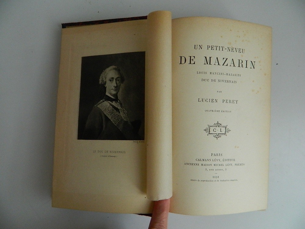 A little nephew of Mazarin Louis Mancini Mazarini Duke of Nivernais by Lucien Perey Editions Calmann Levy 1891 Portrait in frontispiece 4th edition VI + 578 pp. Half-cooker binding on the smooth back, golden title. In good condition, glued back, lacking in headdresses, a separate notebook (very complete, without lack). 22 x 13 cm A little nephew of Mazarin Louis Mancini Mazarini Duke of Nivernais by Lucien Perey Editions Calmann Levy 1891 Portrait in frontispiece 4th edition VI + 578 pp. Half-cooker binding on the smooth back, golden title. In good condition, glued back, lacking in headdresses, a separate notebook (very complete, without lack). 22 x 13 cm