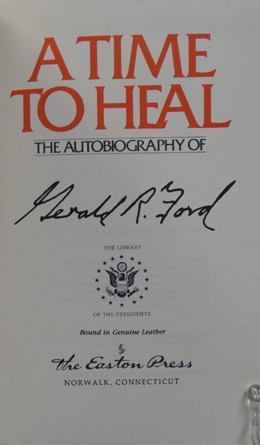 SIGNED by Gerald Ford. Beautiful leather bound book with gold fore edges and gold ribbon. Gorgeous book....