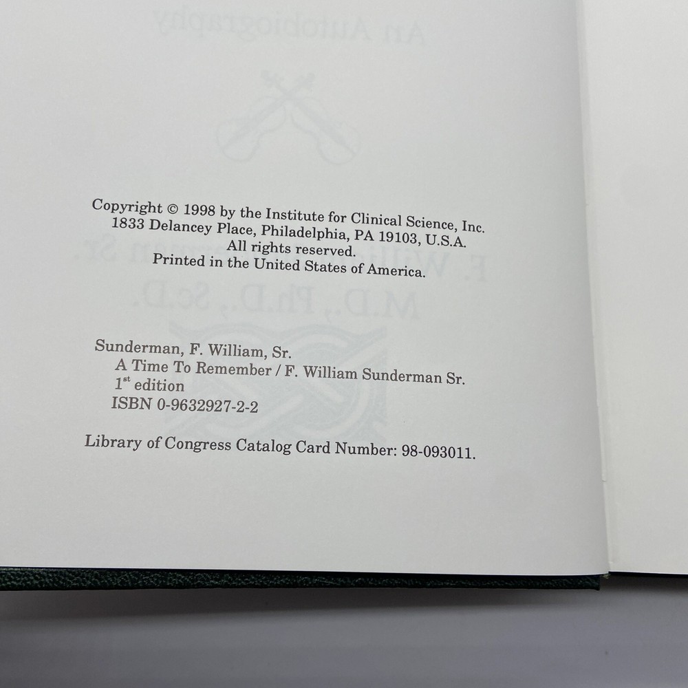 A Time to Remember: An Autobiography by F. William Sunderman (leather bound)...