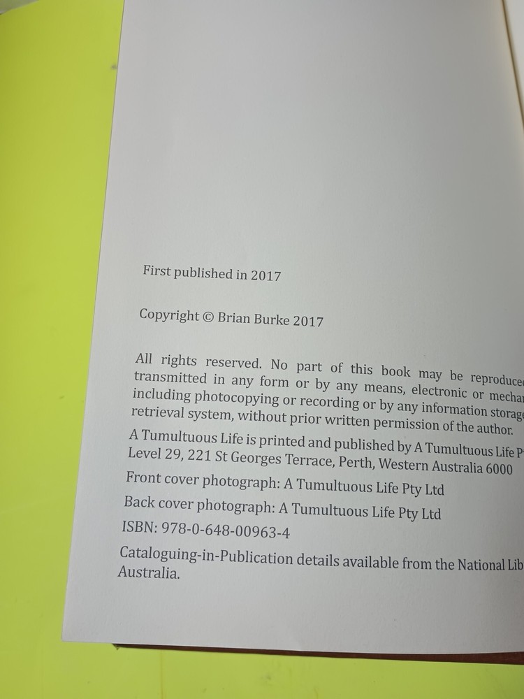No marks. See actual images. Free shipping. Signed edition. Purchased notes : Sku-7-1-24 All items cleaned and sanitized as best as possible before shipping! All items are free shipping unless noted All free shipping is lower 48 states All sales are satisfaction guaranteed unless noted All returns must be within 30 days All books & media ship USPS media Expedited shipping is available, just inquire before purchasing Your satisfaction is our goal, feel free to contact us before leaving feedback if any issues We ship daily Mon thru Fri Priority & Fedex when noted in description This hardcover book, titled "A Tumultuous Life" by Brian Burke, is a fascinating read for anyone interested in the topic of ships. Published in 2017, this book is filled with captivating stories and experiences from the author's tumultuous life. The book is signed by the author and is in English language. The book is perfect for collectors, book enthusiasts, or anyone interested in the topic of ships. This book is a great addition to any collection and is sure to provide hours of entertainment and insight into the author's life. Get your copy now and experience the adventure!