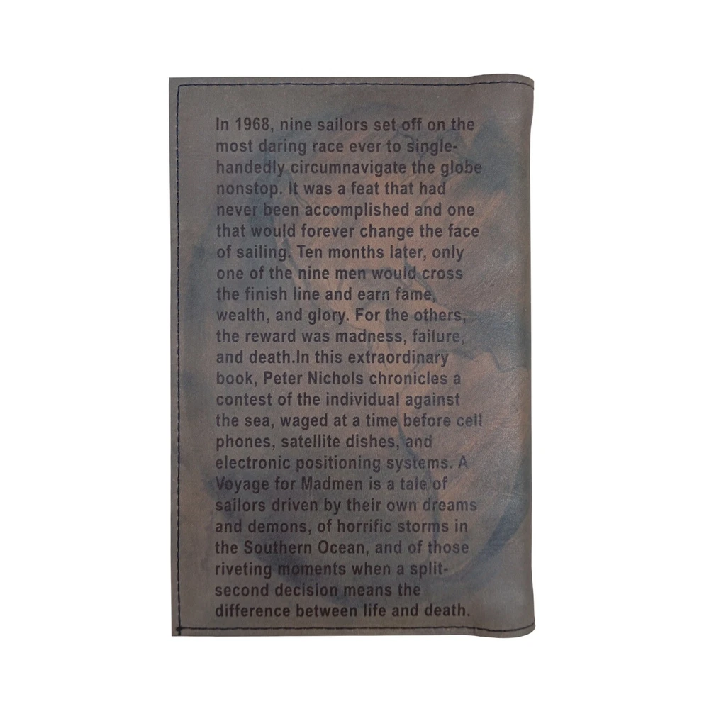 Books, as much as experiences, change my life, and I decided to make a limited collection of all the books I read and loved. And maybe you also will find in my collection a book that you enjoyed, and it even might have influenced your life. The book is a soft cover which I recycle and transform into a limited edition, personalized hardback with leather cover, designed and made by me. First, I prepare the book by embedding cotton cords into the spine. Adding 2 mm wood boards to the front and back. And reinforcing everything with cloth. To make the cover I use grade A, naturally tanned hide, I buy from a tannery in north Spain. It is the same leather Louis Vuitton uses to make his bags, so it is top quality. I do all the processing of the leather myself. First, I design the cover, and for this I used a painting of a sail boat caught in the rough seas, while participating in the solo race around the world. Next, I mix leather inks and screen them on the surface of the leather. The inks are partly absorbed by the skin to create a permanent bond. Finally, I coat the leather with protective solution. The leather gives the image a vintage look and beautiful texture, and it will age nicely with time. Inside the front cover. I can print a personal message or a quote from the book. The book is beautiful. Visually it has a very nice texture, it smells great, and the more you handle it the more beautiful it will become. And it makes a great gift for yourself, or somebody who appreciates books. So if you want one, don’t snooze, or you might lose. I will make a total of 100 editions. Each one will be initialed by me and numbered. The numbers will go in chronological order from 2 up, since number 1 stays with me. Book - A Voyage For Madmen by Peter Nichols Size- 8 x 5.5 inches (21 x 13.5 cm) Edition - 11 of 100, initialed and numbered If you are interested in a different title, send me a message and I will give you a quote. You can see the video of how I make the book cover in the link below https://youtu.be/WUC2lGlsgGE If you would like to hear my reviews of the books I read, you can find them in the following link https://www.youtube.com/@livingandreading1159/videos Returns: This is a custom-made item, so returns or exchanges are not accepted. But you can contact me if there is any problem with your order. Colors: Since I make each item to order, the color might vary from the pictures. It depends on how the inks mix and how they react with leather. Shipping: I make each item to order, and it takes a few weeks, since I need to find the book first. I go to the post office once a week. Estimated delivery time is about two weeks, but it depends on the postal service and customs. And occasionally there are delays, and it might take a month or so to arrive.
