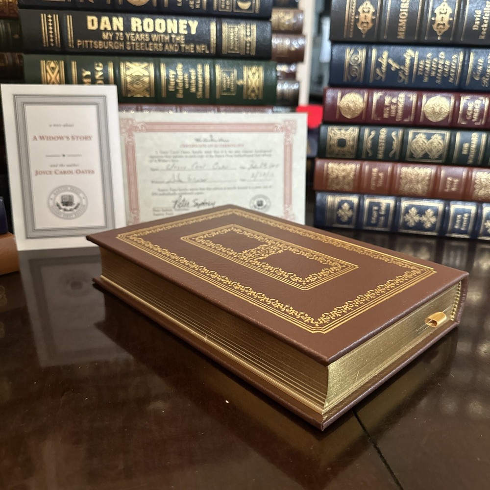 This is a collector's edition of the book "A Widow’s Story” by Joyce Carol Oates. It is a limited, first edition print that is signed by Joyce Carol Oates. The book, which is in great shape, is bound in leather and published by Easton Press and includes a certificate of authenticity. This book is marked number 263/850. Please see photos for exact condition and check my other listings for more unique and first edition Easton Press books.