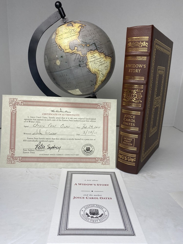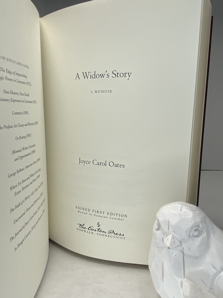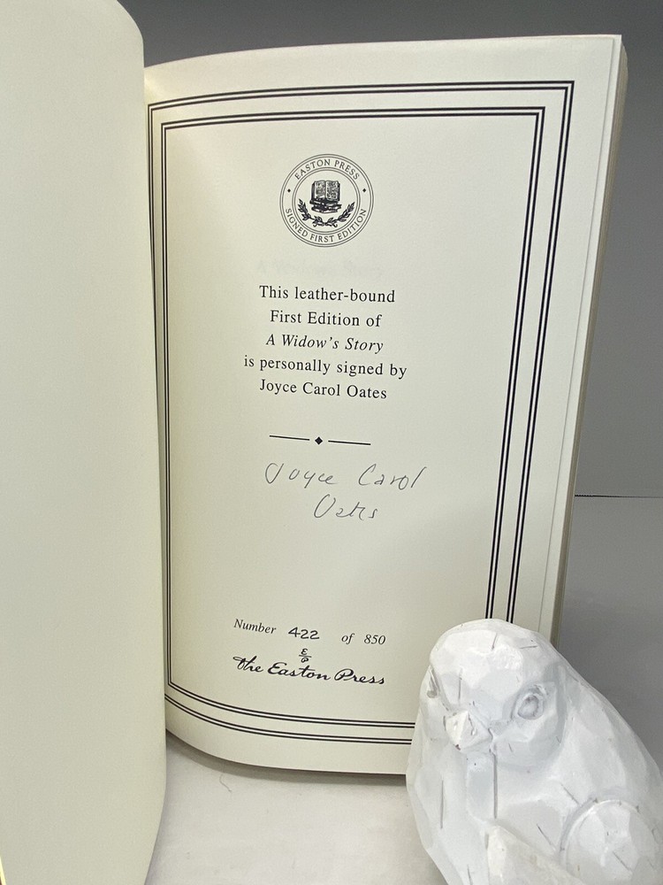 A Widow’s Story SIGNED by Joyce Carol Oates - First Edition Easton Press MINT Hand-numbered 422 of 850. Condition This book is in excellent, unused or very gently-used condition. There are no attached bookplates or embossed seals. Sharp corners, no obvious scuffs or rubs. There are little to no scratches/marks to the gilded page-edging (see photos). Please see the photographs for best description. Please review all photos carefully before purchasing, and feel free to ask questions if the photos do not suffice. Also, be sure to check out our other listings at Settembrini’s Selections. Returns are only allowed due to shipping damage or item not being as described. Due to USPS insurance claims procedures, partial refunds are not allowed due to shipping damage. Items damaged in shipping must be returned in the original packaging as received. The USPS requires inspection of the packaging and item damaged. Synopsis Unlike anything Joyce Carol Oates has written before, A Widow’s Story is the universally acclaimed author’s poignant, intimate memoir about the unexpected death of Raymond Smith, her husband of forty-six years, and its wrenching, surprising aftermath. A recent recipient of National Book Critics Circle Ivan Sandrof Lifetime Achievement Award, Oates, whose novels (Blonde, The Gravedigger’s Daughter, Little Bird of Heaven, etc.) rank among the very finest in contemporary American fiction, offers an achingly personal story of love and loss. A Widow’s Story is a literary memoir on a par with The Year of Magical Thinking by Joan Didion and Calvin Trillin’s About Alice.