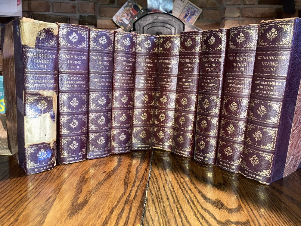 ANTIQUE 10 VOL BOOK COLLECTION: Washington Irving 10 Vol Edition Deluxe Leather. All in great condition besides the binding of Volume 1. Books have hardly been opened.