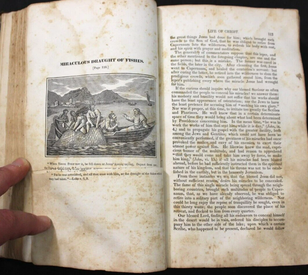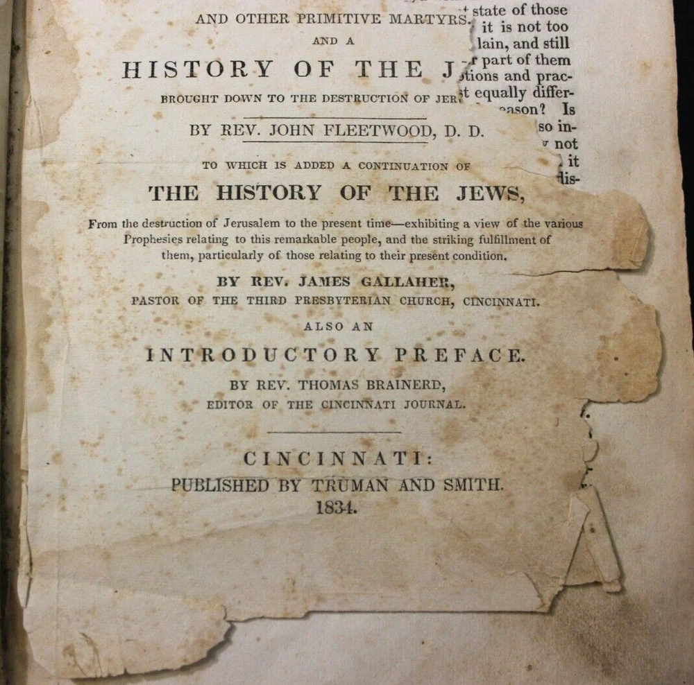 We are offering for bidding an ANTIQUE 1834 "THE LIFE OF CHRIST AND A HISTORY OF THE JEWS" LEATHER BOUND BOOK WITH SEVERAL ILLUSTRATIONS BY REV. JOHN FLEETWOOD AND PUBLISHED BY TRUMAN & SMITH. The item is in Acceptable Overall Condition with wear / damage to the cover boards and spine, foxing / staining of pages, damaged title page and missing contents pages. The book measures approximately 5 1/2" x 9" and has 668 pages. The item is being offered for sale as is seen in the photos. TERMS OF SERVICE WHO WE SELL TO: We sell and ship worldwide. Anyone outside of the U.S. must use the eBay Global Shipping Program. SHIPPING POLICY: We base all U.S. shipping charges on the USPS rate system but we sometimes ship via Fedex or UPS if the shipping charges are similar. We add a small amount to each item to cover handling and material costs. Usually the amount added is about $1.00 for standard sized packages and $0.50 for small or flat items. We charge a little more for larger items that require a larger container or special attention in packaging. We will recycle packing supplies whenever possible but will also use new packing supplies when needed. We will combine shipping of multiple items when possible and will reduce the shipping charges to reflect the actual savings. Please email us if you win multiple items so that we can adjust your final invoice to reflect any savings from combining shipping. We do not try to make money on shipping and handling charges and will always attempt to keep shipping costs as low as possible. INTERNATIONAL SHIPPING POLICY: All international purchases must use the eBay Global Shipping Program for shipping. INSURANCE POLICY: EBAY’s policy no longer calculates insurance but we do require insurance for any item that sells for more than $50 and will include the cost in the shipping and handling cost. In most cases the insurance will be provided through USPS or alternate carrier but could be provided by a private insurer if the cost is less. PAYMENT TERMS: We accept PayPal only. Please pay for your items as soon as possible but no later than three (3) days from the end of the auction. This is a side business and we have day jobs so we will normally ship items within 3 - 4 days of payment. If it is important for you to receive your item more quickly please let us know and we will do our best to accommodate you. RETURN POLICY & COMMUNICATION: We do offer returns within 14 days of sale and with the buyer paying for shipping costs. We offer a wide range of eclectic items and always try to describe everything we offer properly but we are certainly not experts on everything so if we make a mistake in a description please contact us and we will make every effort to make the situation right. We are big believers in communicating so please email us with any questions. OUR MOTTO: ““EXCEEDING EXPECTATIONS”