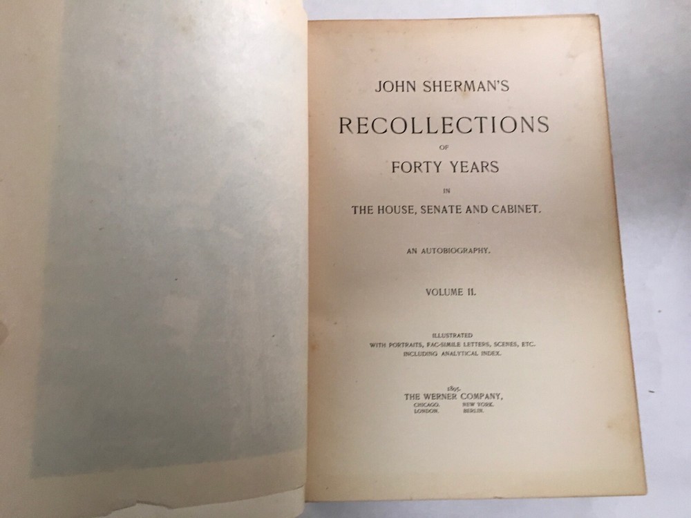 John Sherman's Recollections of Forty Years in the House, Senate, and Cabinet (Werner: 1895) volume 2 9.3/4 inches high...