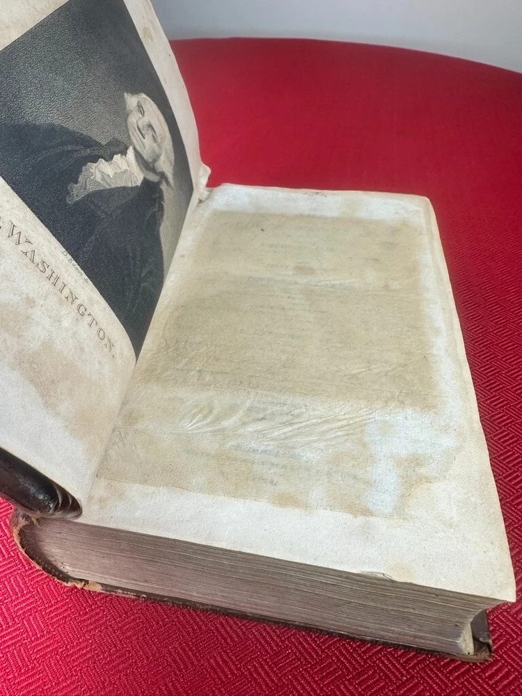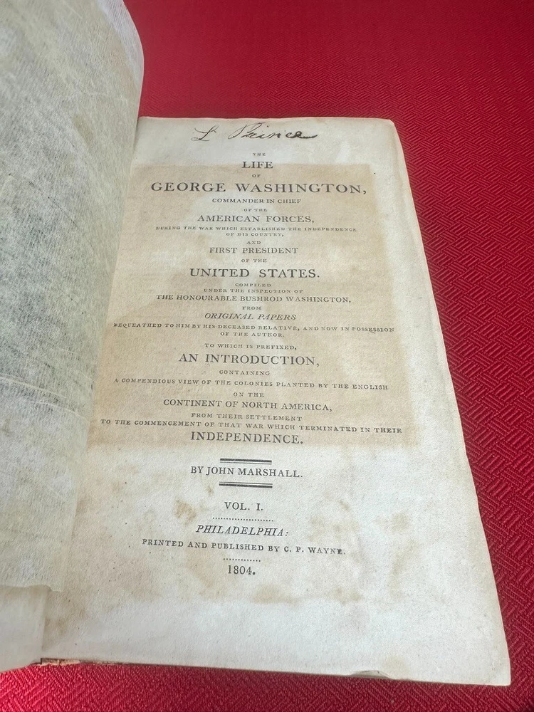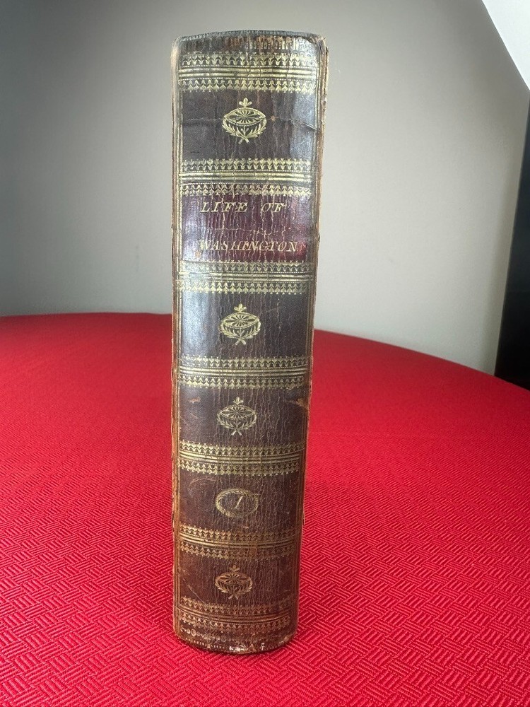 The antique book "Life of George Washington" by John Marshall, volume 1 from 1804, is a collector's item and a great gift for history enthusiasts. The book is bound in leather and focuses on the biography of George Washington, making it a valuable addition to any library or collection.