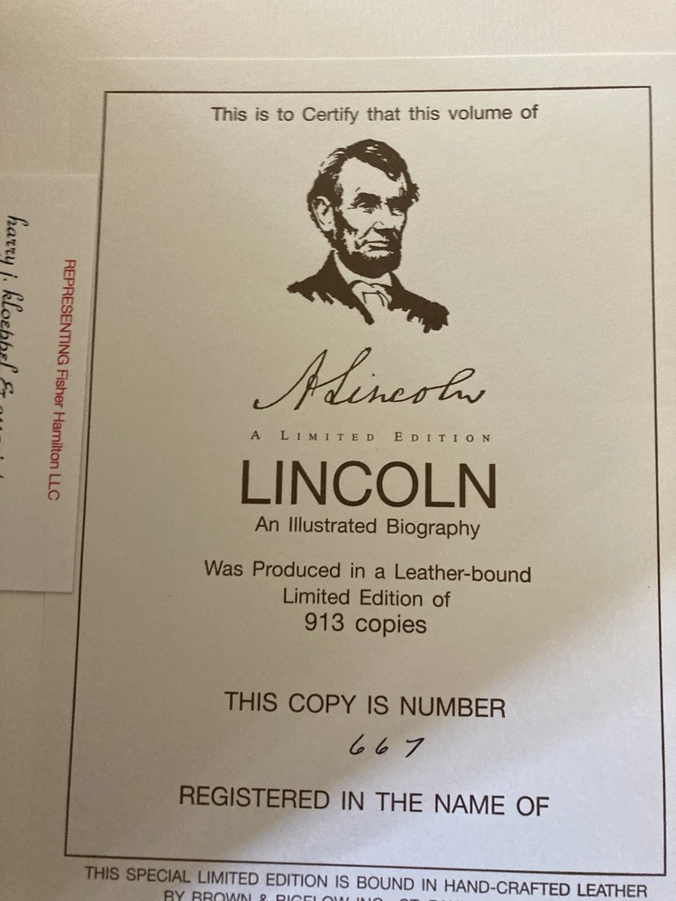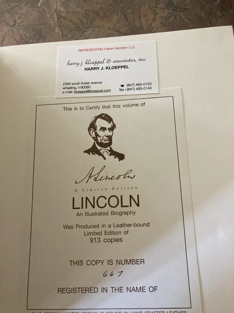 Abraham Lincoln Limited Edition By Leigh Kraftcheck. Very Rare and in perfect condition. Never opened more than enough to get certification picture. Never opened. Limited edition is number 667 of 913. ISBN number 0-517-20715-X. Life story from 1809 to 1865.