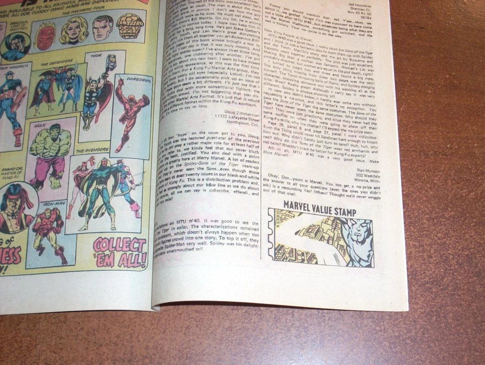 25 cents combined shipping on all comics. Just add up to 40 items to your cart and it'll be reflected in your total when you check out. If it's not, just request an invoice when you're done and I'll send you a discounted one. These are very nice comics with little wear in most cases. I have photos of each one along with a fuller description at the bottom of this listing. Individual comics will come bagged and boarded unless you see "MY" in the drop-down which means they'll be archived in mylar. Comic sets will ship together in comic bags. I don't have individual boards for them. All will come very well packaged to prevent damage in shipment. NOTE: The earliest issue in the Master of Kung Fu lot has a tear almost all the way down the cover. I have 2 CD sets in the drop-down based on the Maxwell Grant (Walter Gibson) Shadow character. I opened the first CDs of each set and played them but the others in each set are unopened. No returns will be accepted unless there's a gross error on my part. Comic Description List Adventure Comics 434 The Spectre Adventure Comics 439 The Voice That Doomed The Spectre Adventures on Planet of the Apes 7 Batman Haunted Knight TPB Joker Poison Ivy Penguin Beware the Claws of the Cat 3 Kraken Greer Nelson Pre Tigra Mylared 20 Years Bloodshot 35 Versus Rampage Captain Glory Jack Kirby with Chrome Card First Issue 1 1993 Kirbychrome Topps Ghost Dark Horse Comics Greatest World Arcadia Week 3 First Appearance Dark Horse Comics Greatest World Complete Set Creatures on the Loose 23 Thongorr Sword and Sorcery Warrior of Lost Lemuria Dark Horse Comics 08 First 1st Appearance of The Man Called X Dark Horse Comics 09 Man Called X Robocop Dark Horse Comics 19 Man Called X Aliens Star Wars Droids DC Special 11 Beware the Monsters Are Coming / Here Neal Adams Cover DC Special 21 War Against The Monsters DC Special 27 Danger: Dinosaurs At Large Captain Comet DC Special 28 Earth Shattering Disasters Batman Aquaman Doctor Strange 02 Silver Surfer Hulk on Cover Silver Dagger and 1st Soul Eater Doctor Strange 03 Dormammu Clea Steve Englehart Frank Brunner MISSING MVS Doctor Strange 04 Sorceror Supreme Vs Death Frank Brunner Doctor Strange 06 Dormammu Umar the Unrelenting Clea Frank Brunner Gene Colan Doctor Strange 7 Demon Fever Doctor Strange 09 Dormammu Doctor Strange 10 Baron Mordo and Eternity Doctor Strange 11 Shadowplay! Doctor Strange 14 Master of the Mystic Arts Versus Dracula Vampire Doctor Strange 15 Sorceror Supreme in The Devil's Workshop! Doctor Strange 16 Master of the Mytic Arts and Clea Doctor Strange 17 Sorceror Supreme and Clea in Time Trap Doctor Strange 19 Master of the Mystic Arts Attacked by Skeletons! Doctor Strange 20 Sorceror Supreme Vs Xander the Merciless! Doctor Strange 29 Master of the Mystic Arts and Nighthawk Vs He Who Stalks! Doctor Strange 32 Sorceror Supreme in Behold: Dream Weaver! Doctor Strange 33 Master of the Mystic Arts and Clea Doctor Strange 35 Sorceror Supreme Doctor Strange 44 Master of the Mystic Arts Doctor Strange 45 Sorceror Supreme Vs The Demon in the Dark! Doctor Strange 47 Ikonn Lord of Illusions Doctor Strange 48 Brother Voodoo Clea Doctor Strange 50 Doctor Strange 44 Juggernaut Infinity War Doctor Strange Lot of 3 The Oath TPB Paperback + Marvel Fanfare Issues 5 & 7 Dragonslayer First Movie Adaptation Mini Series Issue 1 Paramount Disney Drax Versus Incredible Hulk and Thor Warlock and the Infinity Watch 13 21 Lot Fantastic Force First Issue 1 Huntara Vibraxas Psi Lord Devlor Klaw Fantastic Four Atlantis Rising Lot Collectors Preview + Issue 1 Morgan Le Fey Flash Gordon 1 First Issue DC Marvel Lot of 2 From Beyond the Unknown 05 Mr. X The Gorilla Who Challenged the World From Beyond the Unknown 08 Super Size 64 Page Meet Your Masters - the Ants! From Beyond the Unknown 18 The Hitchhiker of Space, Star Rovers + From Beyond the Unknown 19 Return of the Neanderthal Man Paul Revere of Time From Beyond the Unknown 20 Fishermen From the Sea The Interplanetary Restaurant + From Beyond the Unknown 24 Stories to Stagger the Imagination From Beyond the Unknown 25 The Man Who Sold the Earth! Ghost and the Shadow Dark Horse Ghost Dark Horse Eric Luke Adam Hughes Lot 1 – 22 Barb Wire Appears Mature Themes Ghost Rider 21 Gladiator Eel Ghost Rider 23 Water Wizard Enforcer Jack Kirby Cover Don Heck Art Ghost Rider 36 In Denver Dwells A Demon Ghost Rider 40 Death in the Nuclear Family Ghost Rider 60 Black Juju Herb Trimpe Bob Waicek Cover Don Perlin Art Ghost Rider 62 Mayhem in the Middle East Arabian Knight Cover Jack Sparling Art Ghost Rider in Human Fly 2 Race to Destruction Duel on Wheels Infantino Godzilla 1 King of Monsters Herb Trimpe Nick Fury Dum Dum Dugan SHIELD 50c C/S Godzilla 03 Champions Godzilla 04 Batdragon Godzilla 05 Isle of the Living Demons Herb Trimpe Tom Sutton Godzilla 06 Dum Dum Dugan Agents of SHIELD Godzilla 07 Red Ronin Godzilla 08 Red Ronin Godzilla 09 Last Gamble At Las Vegas Godzilla 10 The Yetrigar Godzilla 11 Red Ronin Yetrigar Godzilla 12 Star Sinister Godzilla 13 Mega Monster Godzilla 14 Siege of the Super Beasts Dum Dum Dugan Agents of SHIELD Godzilla 15 Stampede Herb Trimpe Godzilla 17 Dum Dum Dugan Agents of SHIELD Herb Trimpe Godzilla 18 Battle Beneath 8th Avenue Rat Sewers Herb Trimpe Godzilla 19 Panic on the Pier Dum Dum Dugan Agents of SHIELD Herb Trimpe Godzilla 21 Versus Devil Dinosaur MARK JEWELERS INSERT Godzilla 22 Versus Devil Dinosaur MARK JEWELERS INSERT Godzilla 23 Versus Avengers Thor Iron Man MARK JEWELERS INSERT House of Mystery 127 The Cosmic Game of Doom “I bet one earthling!” House of Mystery Showcase Presents Volume 1 500 Total Pages House of Mystery Showcase Presents Volume 2 500 Total Pages Incomplete Death's Head II Inhumans Complete Set Inhumans The Untold Saga King Size Special One 1 Shot Issue Isaac Asimov Tekno Comix Ibots First Issue 1 George Perez Howard Chaykin 1995 Iron Man 99 Frankenstein James Bond For Your Eyes Only First Movie Adaptation Mini Series Issue 1 Topps S