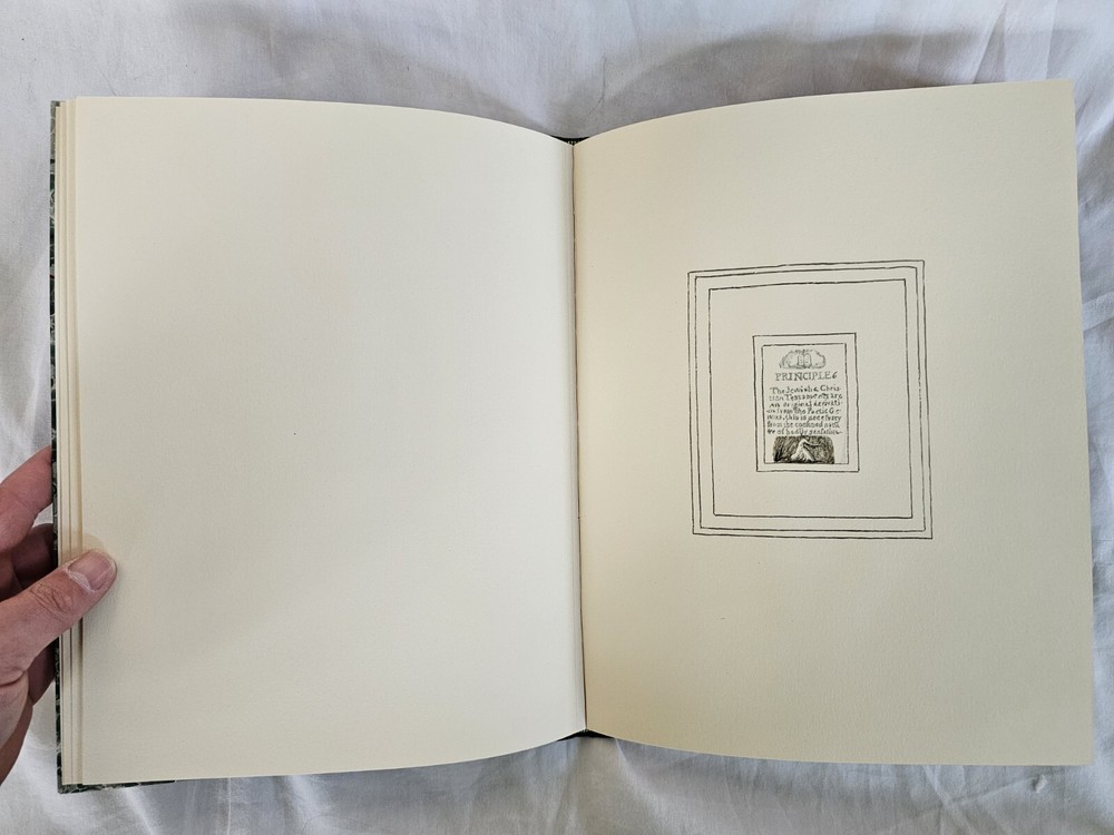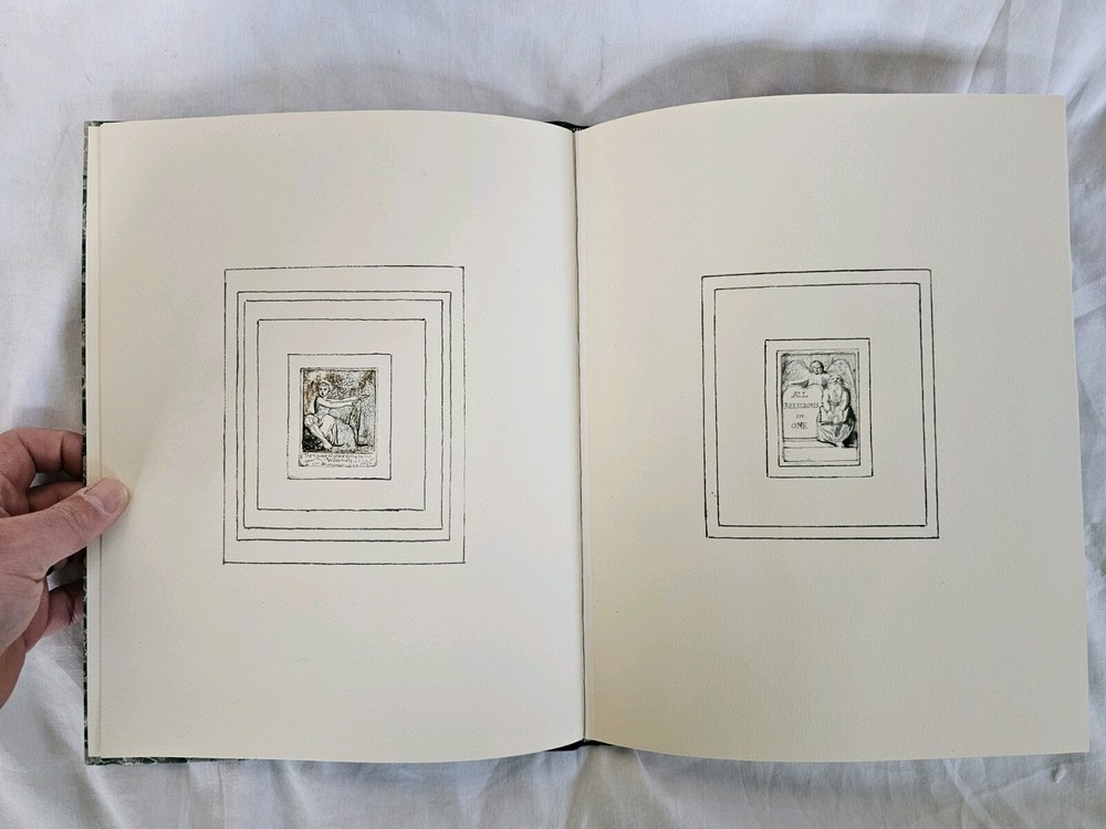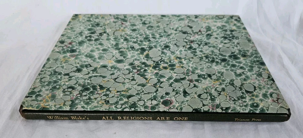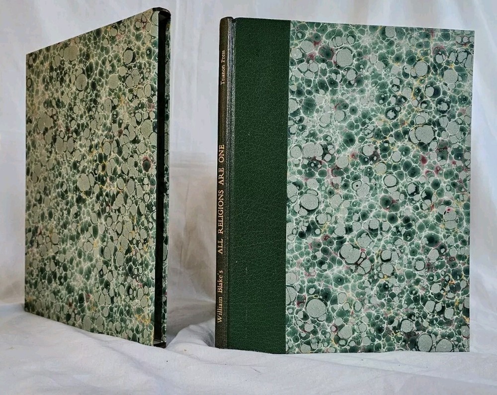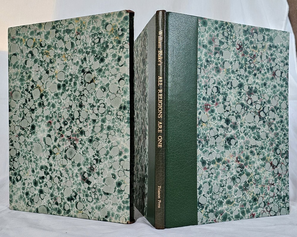All Religions are One. By William Blake. London: The Trianon Press for The William Blake Trust, 1970 . Number 265 of 600 copies in half-leather over marbled boards, gilt lettering to spine, top-edge gilt. Shelf wear, cover is bowed, otherwise very good condition, in slipcase.
