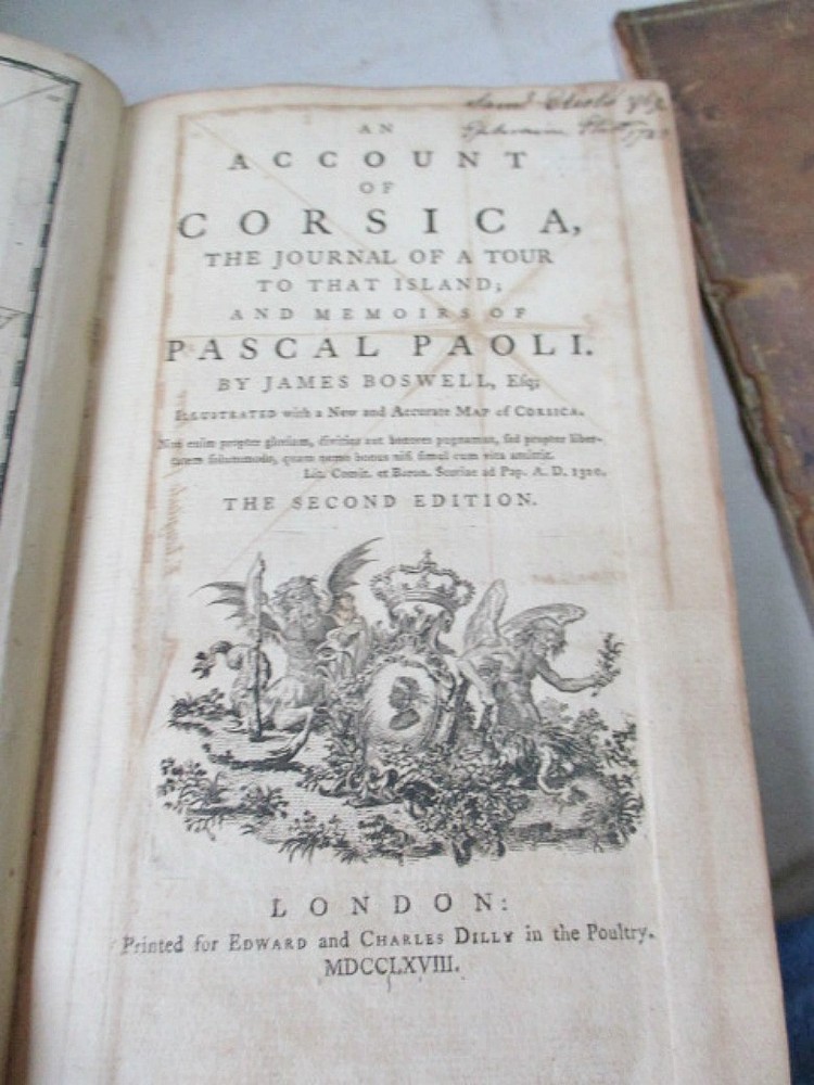 R892. The Journal of A Tour To That island and Memoirs of Pascal Paoli by James Baswell. Printed for Edward and Charles Dilly in The Poultry, London, 1878 (the same year as First Edition). Octavo, 384 pages. Large, new and accurate map, foldied in front with small repaired tear in the usual place. Contemporary leather with frontcover loose, rear hing cracked. Tight, clean text. Very Good condition. Please do not hesitate to e-mail with any questions. As Always, Satisfaction Guaranteed! PAYMENT: PayPal, but I am open to other ideas! I expect to receive payment within 10 days, unless we have made other arrangements. Most items are sent Media or First Class. If you prefer Priority mail, I will be glad to make the adjustment. I'm glad to combine multiple purchases in order to minimize shipping costs. I WILL SHIP INTERNATIONALLY, and I try to be as economical as possible with the shipping costs. RETURN POLICY: Satisfaction Guaranteed! Track Page Views With Auctiva's FREE Counter