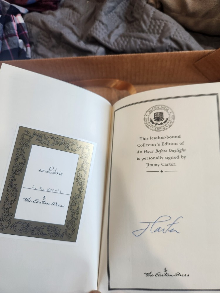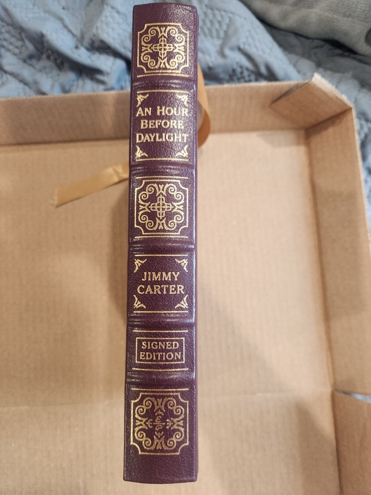 An Hour Before Daylight by Jimmy Carter Special Signed Collector's Edition Leather-bound, archival quality paper Like new condition with only a few tiny blemishes, pictured above (gilt page ends)...