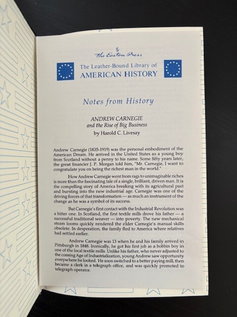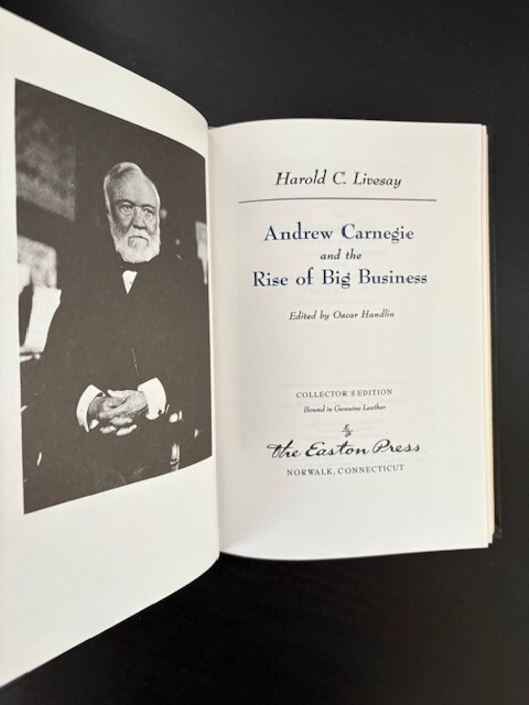 Andrew Carnegie and the Rise of Big Business by Harold Livesay. Published by The Easton Press in 1988. Collector's Edition Bound in Genuine Leather. The condition is Very Good.