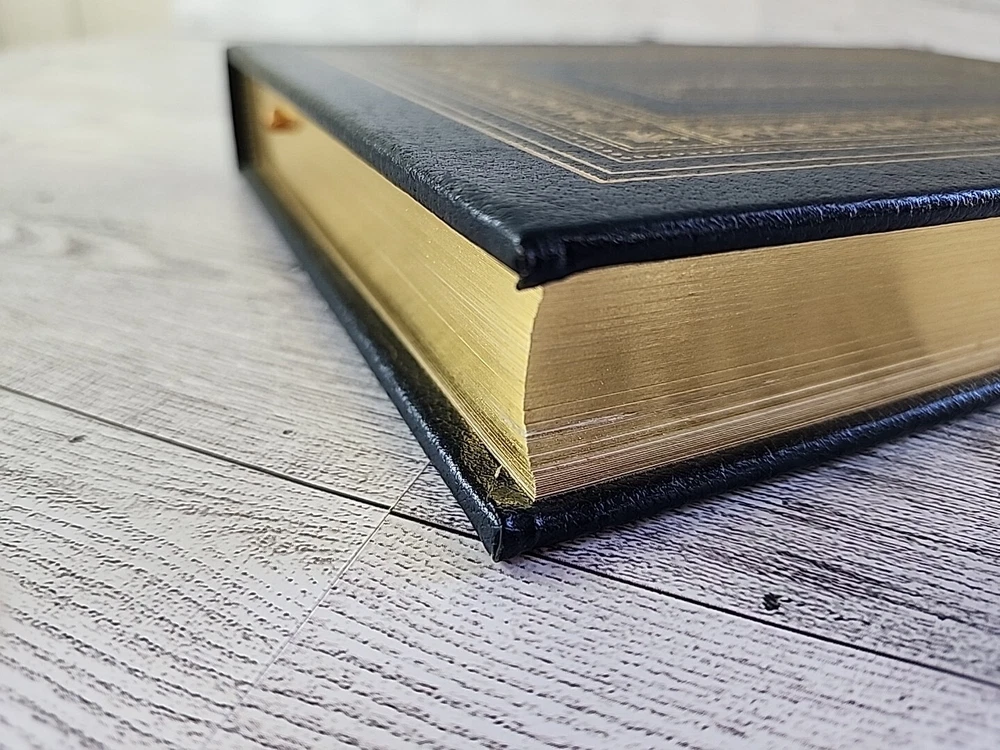 Good condition. Damage on front cover and gilt edging. Otherwise still a great read and display.