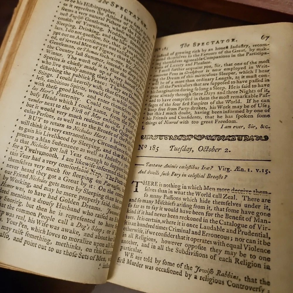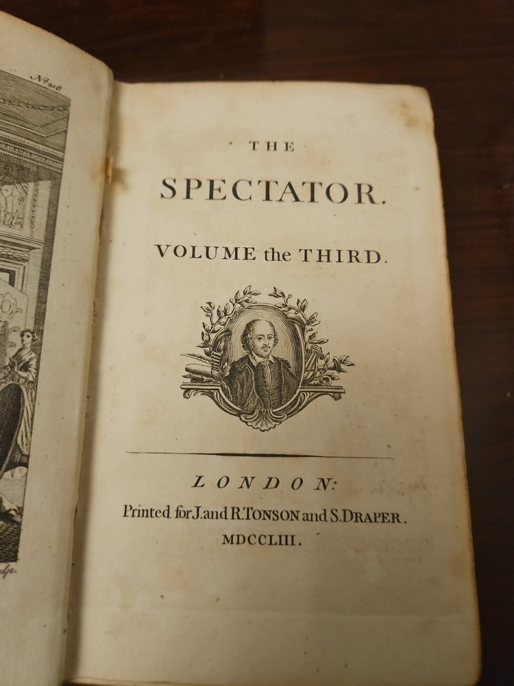 This antique book titled "The Spectator III" is a rare find for any book collector. It features a fine binding and is an original printing from 1753. The book is written in English and has a political topic, making it a great addition to any history or military collection. The book was printed by j. and R. Ronson and s. draper in London, United Kingdom, and has special attributes such as being a luxury edition and an ex-library copy. The book is categorized under "Books & Magazines" and "Antiquarian & Collectible" and is a great subject for anyone interested in fiction and history. See pictures
