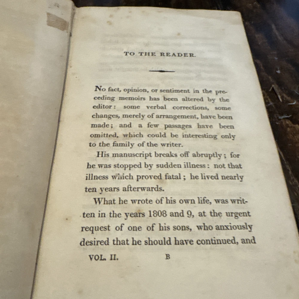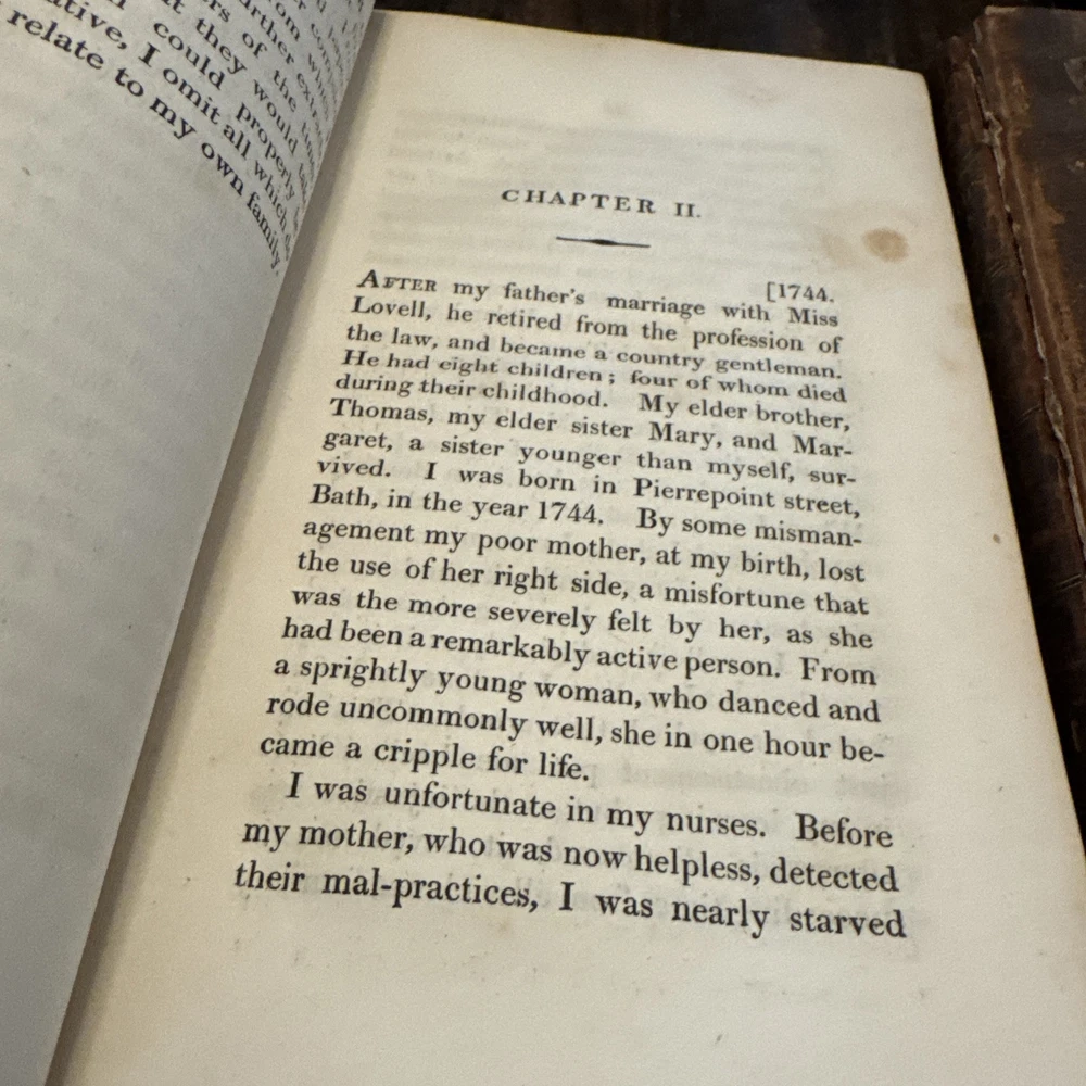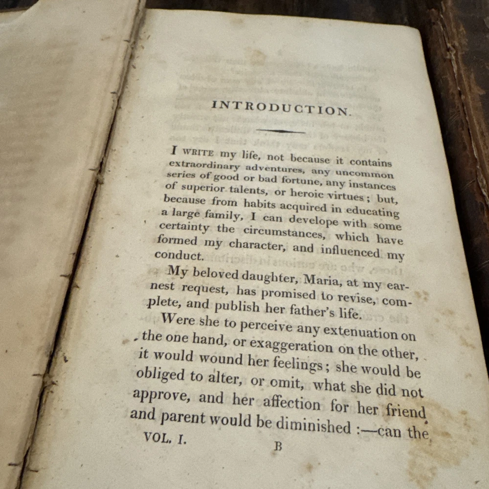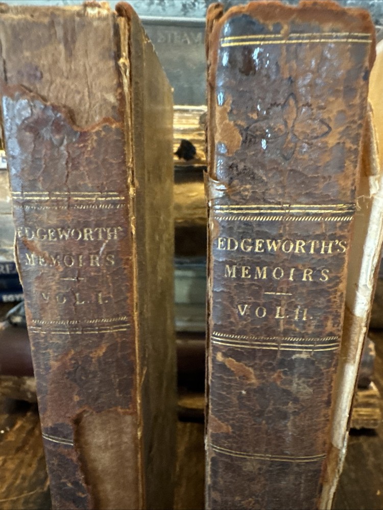 2 Antique 1820 First Edition leather bound books with heavy wear consistent with aging ,spines have gold gilt titling, volume 1 has heave leather wear and missing pieces of leather , heavy discolored pages with heavy age stains , cracked hinges, detached boards, title pages and pictorial frontispieces have a piece cutout, inscribed to the previous owner , earmarked pages, some rips and tears to the pages ,etc please see pictures for more details. SOLD AS IS Both Measure 8.5” x5.5 “ and are 205 years old - We have hundreds of books listed and combine shipping on multiple purchases (K)