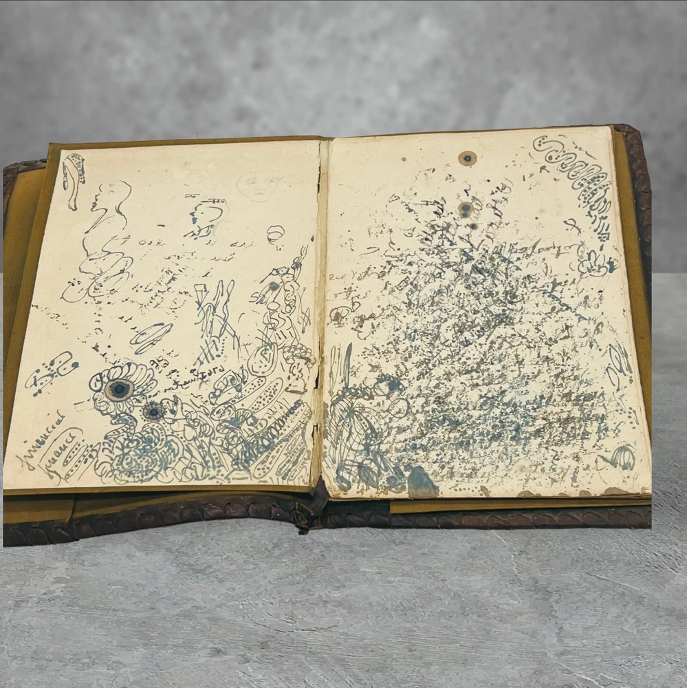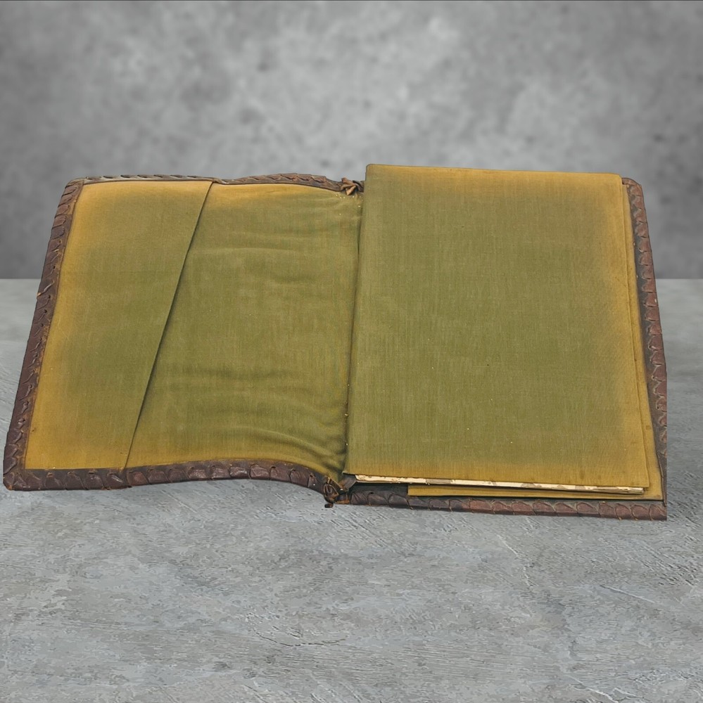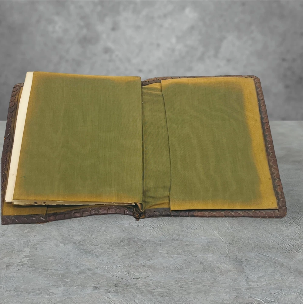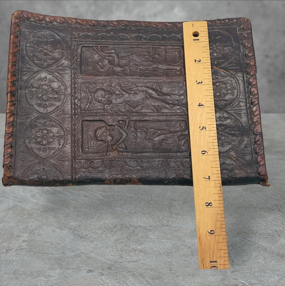 This antique leather bound notebook from the 1880s is a unique collectible for art lovers and history buffs alike. Handmade with intricate details, it features beautiful art nouveau cherubs and can be used as a sketch or ledger book. The special attributes of this item make it a rare find and a great addition to any collection. The notebook was made in North America and is an original piece, adding to its value. Don't miss out on the opportunity to own this piece of history. Route 66 Trading House Jewelry, Antiques, Collectibles and Fine Sundries All products packed with care in a sanitized, smoke free, and safe environment We take pride in taking care of our customers, and do everything in our power to make sure they are satisfied! If you are not satisfied with your purchase please reach out to us to make it right before you leave any negative or neutral feedback! We appreciate your business! Proud AMERICAN Seller! Payment Information We accept most forms of payment thru the recent Ebay Managed Payments Program! Shipping Information Orders are usually processed and shipped in 1 business days; exceptions are only for extenuating circumstances. Orders placed on Late Friday, Saturday or Sunday will ship out Monday. Please allow 2-6 business days for shipping transit time depending on shipping service within the continental United States. Tracking information will be uploaded directly to your Ebay account once we print the shipping label Returns/Refunds information You may return goods purchased from us for a refund or an exchange within 30 days upon receipt. Returns are handled promptly and efficiently, if you don't like it no problem, message us first before you open up a return to see if we can resolve. Refunds will be processed within 2-4 days after receipt of the return Contact Us Please contact us via the eBay messaging systems with any questions , concerns, or comments that you may have. We will respond to all inquires within 24 hours or less.
